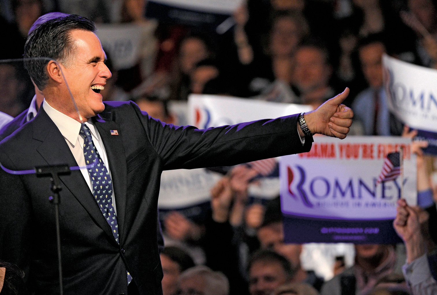 Na dwa dni przed głosowaniem w stanie New Hampshire (NH) faworyt republikanów Mitt Romney odwiedza miasteczko Exeter. Spotkanie z wyborcami w szkole przy Blue Hawk Drive ma oprawę jak należy – najpierw prezentacja licznej rodziny kandydata (żona Ann, czterej synowie i ich piękne małżonki), rytmiczny rock jako akompaniament, z boku tablica elektroniczna z rzędem zmieniających się cyfr: rosnący dług USA, zawiniony, oczywiście, przez Obamę. Na widowni dobrze ubrani ludzie w średnim i starszym wieku. Romney przemawia na tle olbrzymiej flagi amerykańskiej i ustawionych rzędami wybranych fanów. Mówi, że w odróżnieniu od prezydenta „nie będzie przepraszał” za Amerykę i wygłasza hymn na cześć „amerykańskiej wyjątkowości”. To Europa – wywodzi – stawia na interwencję państwa w gospodarkę i redystrybucję dochodów, no i widać marne tego skutki. „Ja nie wierzę w Europę, wierzę w Amerykę. Kocham Amerykę, kraj wielkich możliwości, jego ludzi i zasady, na których został zbudowany” – mówi. Obama – dodaje – też kocha kraj, ale zasad tych nie rozumie. Sala nagradza mówcę umiarkowaną owacją.
