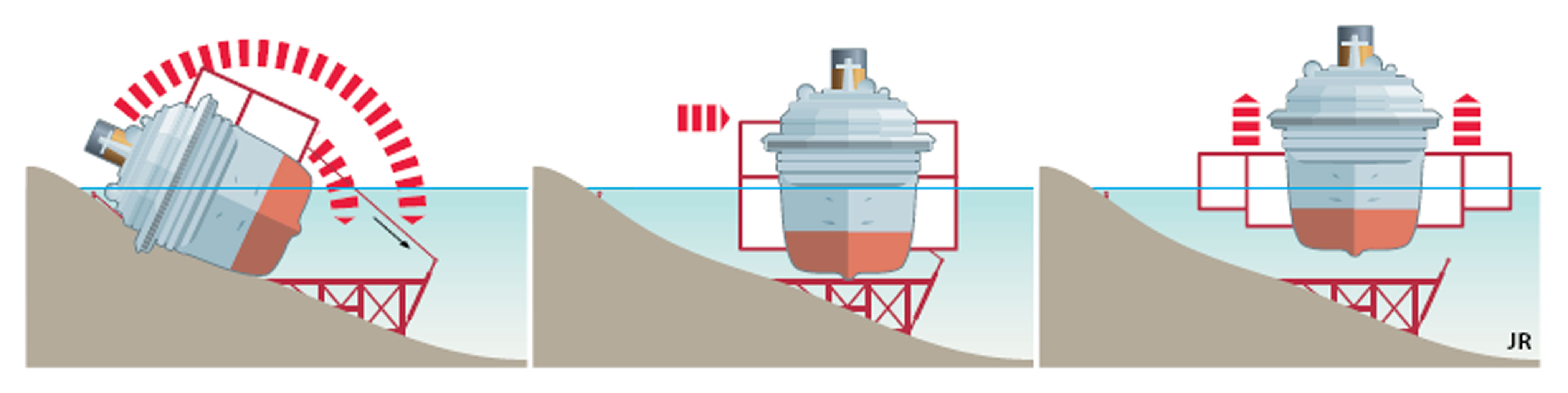 Pechowy wycieczkowiec „Costa Concordia” spoczywa na prawej burcie u włoskich wybrzeży od 13 stycznia i najwyższy czas zacząć go stawiać na nogi. Spośród sześciu scenariuszy armator wybrał plan Amerykanów z Titan Salvage, firmy specjalizującej się w morskich operacjach ratunkowych, oraz Włochów z Micoperi, ekspertów od platform wiertniczych. Operacja właśnie rusza i będzie miała cztery fazy. Po pierwsze, trzeba statek solidnie przymocować do podłoża, aby podczas prac nie zsunął się głębiej. A „CC” waży niebagatelne 44,6 tys. ton. Następnie pod dnem kolosa zbudowany zostanie gigantyczny pomost. Później do lewej burty dospawane zostaną równie gigantyczne zbiorniki. Napełnione wodą sprawią, że statek powróci do pozycji pionowej. Zbiorniki dospawane do prawej burty zapewnią mu stabilność. Po stopniowym opróżnieniu zbiorników „CC” odzyska sterowność i zostanie odholowany do portu. Koszt operacji: 236 mln euro. A jej złożoność tak wielka, że lepiej trzymać kciuki.