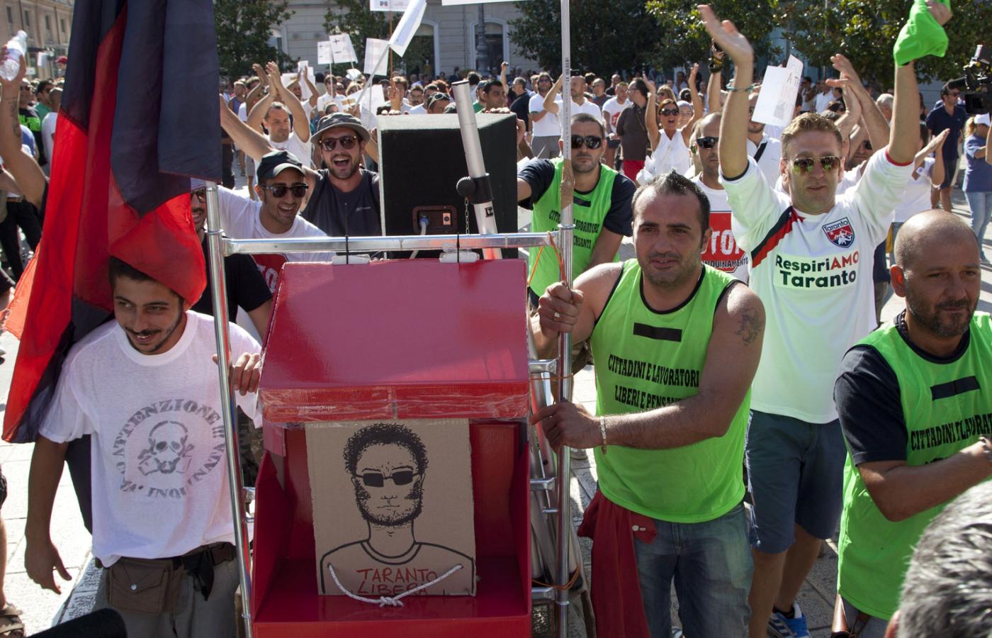 Vincenzo Tauro, lat 33, pracuje w ILVIE od 11 lat. Teraz broni huty przed zamknięciem. Bierze udział w cotygodniowych wiecach, marszach protestacyjnych i blokadach dróg. Urodził się i mieszka w dzielnicy Tamburi, położonej najbliżej huty. Jak wspomina, rdzawy pył z ILVY, podobnie jak zasnute szarym dymem niebo, towarzyszyły mu od zawsze. Woda w wannie po wieczornej kąpieli zawsze była pomarańczowa. Po meczu czy zabawie na podwórku zawsze wracał umorusany na pomarańczowo. Jego dwóm synom to nie grozi, bo burmistrz Tarentu Ippazio Stefano, z zawodu pediatra, już cztery lata temu zakazał dzieciom i młodzieży w Tamburi wszelkich zabaw na świeżym powietrzu.