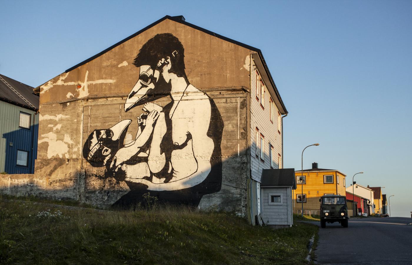 – Nie chcieliśmy tylko przyjechać, pomalować ściany i wyjechać. Chodziło o to, żeby zrobić coś, z czego lokalna społeczność będzie dumna, a jednocześnie pokazać dzieciakom, że nie wszystko musi się dziać w wielkich miastach. Fakt, z Vardø bliżej jest do Murmańska niż do Tromsø, pierwszego większego miasta w tym regionie. Według Martina Berdahla Amundsena, redaktora książki „Street Art Norway”, dokumentującej dorobek norweskich artystów ulicy, nieoficjalnym centrum tej sztuki jest Bergen. To tutaj władze zabezpieczyły prace Dolka płytą z pleksi, żeby się nie pobrudziły, i to tutaj przyjechał w latach 90. klasyk gatunku – Banksy.