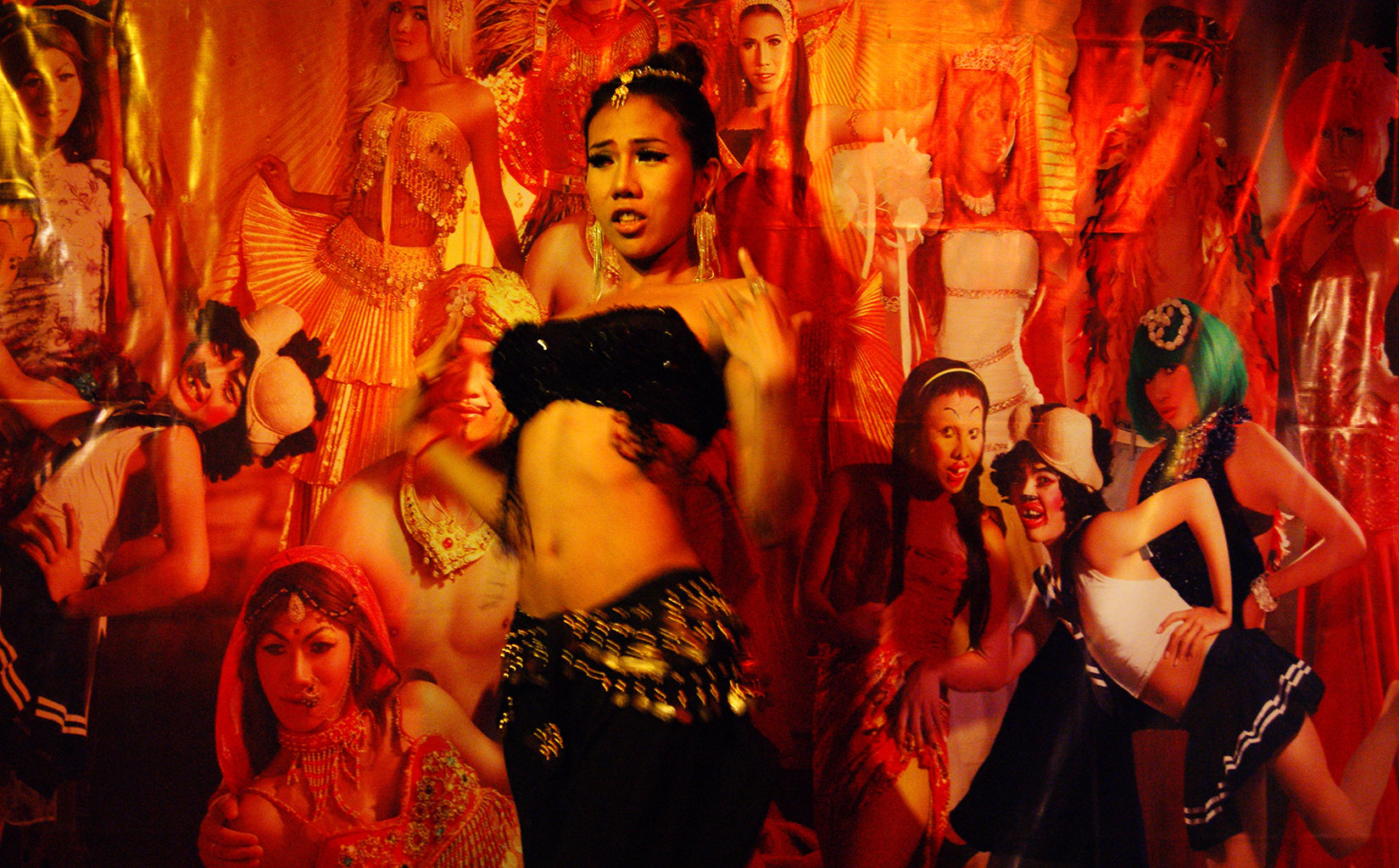 Miss Li opuszcza górę sukienki i półnaga klęka na podłodze. Montuje tani stanik ze zwiniętymi żółtymi ściereczkami w środku. Uważnie odmierza rozmiar na dziś, pozostałe dziewczyny serdecznie się z niej śmieją, zdaje się, że Miss Li jako jedyna w towarzystwie nie ma silikonów. Zupełnie się tym nie przejmuje, podśpiewując w dalszym ciągu, nonszalancko, z jakąś lekko uchwytną czułością zapina biustonosz na chłopięcej sylwetce i maskuje drobne oszustwo kiczowatą kreacją.