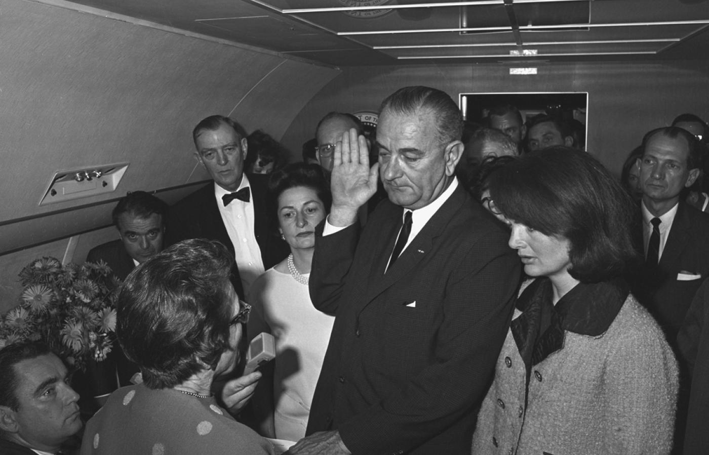 Najbardziej dramatyczne ślubowanie miało miejsce równo pół wieku temu. 22 listopada 1963 r. Ameryką wstrząsnął zamach na popularnego Johna F. Kennedy'ego. Gdy prezydent zmarł w szpitalu w Dallas, agenci Secret Service wpadli w panikę, bo ktoś puścił plotkę że jego zastępca Lyndon B. Johnson także został ciężko ranny. Gdy odnaleźli go całego i zdrowego, od razu przewieźli na lotnisko. LBJ ślubował na pokładzie Air Force One chwilę po tym, jak samolot oderwał się od ziemi. Wówczas jedyny raz w historii nowy gospodarz Białego Domu składał przysięgę przed kobietą, sędzią federalną Sarah F. Hughes z Teksasu. Obok nowego prezydenta w poplamionej krwią męża różowej sukience stała Jackie Kennedy.