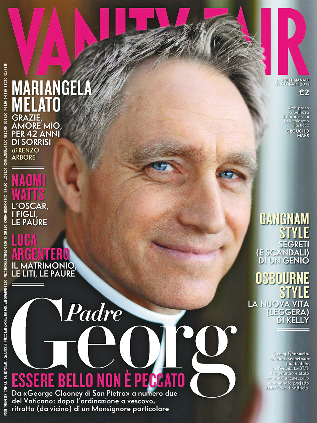 Świeżo mianowany abp Georg Gänswein ozdobił okładkę lifestylowego magazynu „Vanity Fair Italia”. Do zdjęcia specjalnie nie pozował, wywiadu pismu nie udzieli, ale pretensji nie ma. W końcu trudno się nie zgodzić z nagłówkiem: „Być przystojnym to nie grzech”, zachęcającym do lektury materiału o prałacie. Gänswein ma zresztą swój prywatny portal w Internecie, na którym też grzeszy urodą. Jest rodakiem papieża, jego osobistym sekretarzem i prefektem domu papieskiego, czyli zarządcą i koordynatorem codziennego życia najbliższego otoczenia Benedykta XVI w Watykanie. Obie funkcje czynią z 56-letniego arcybiskupa osobę bardzo wpływową na papieskim dworze. To on organizuje na przykład prywatne i publiczne audiencje papieża i pilnuje jego terminarza. Benedykt ma 85 lat; z każdym kolejnym rokiem jego pontyfikatu znaczenie dostojników takich jak Gänswein będzie rosło. W zarządzie prefektury domu papieskiego zasiadał w ostatnich latach Jana Pawła II bp Stanisław Dziwisz; teologiem domu papieskiego jest obecnie Polak, dominikanin Wojciech Giertych, stryj mecenasa Romana Giertycha.