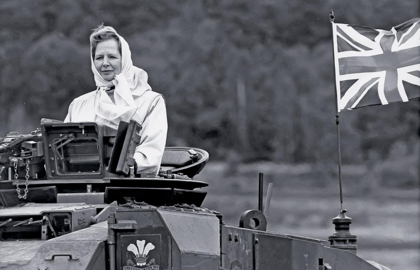Mimo dobrej koniunktury (wzrost PKB kraju w pierwszym dziesięcioleciu jej rządów wyniósł ponad 23 proc.), była jednak ostro krytykowana. Zarzucano jej lekceważenie potrzeb społecznych, nieproporcjonalnie większe nakłady na bezpieczeństwo i porządek publiczny niż na oświatę i służbę zdrowia. Elementem jej kariery była wojna o Falklandy, wyspy na południowym Atlantyku, które w 1982 r. zajęła ówczesna junta argentyńska. Nie bacząc na to, że w wojnie może zginąć więcej żołnierzy, niż Falklandy miały mieszkańców, Thatcher nie ustąpiła juncie i wywołała patriotyczną euforię Brytyjczyków zamorską wyprawą i odniesionym zwycięstwem.