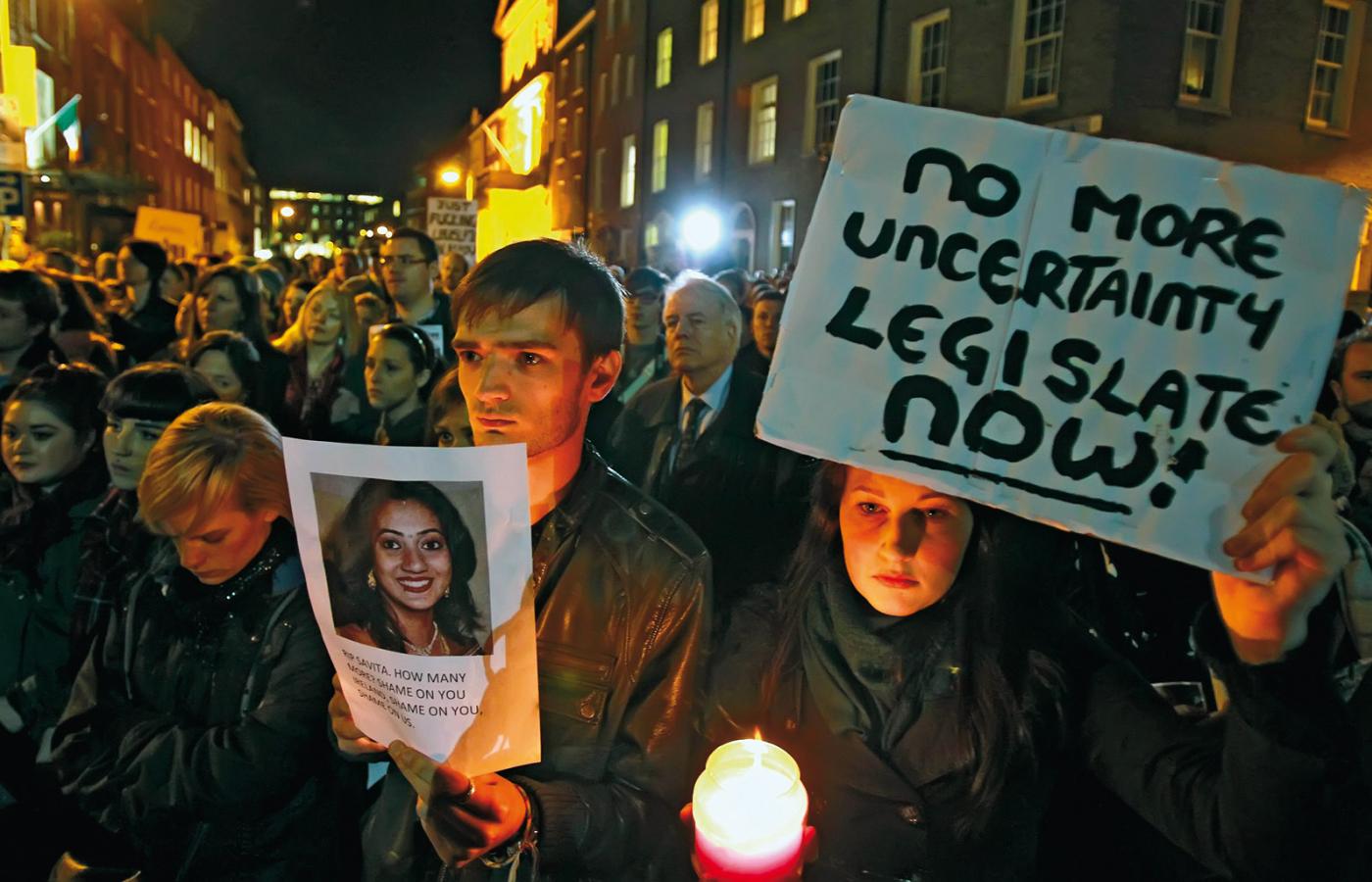 Dziś w Irlandii usunąć ciążę można tylko wtedy, gdy stanowi realne zagrożenie dla życia kobiety. Ponieważ jednak brakuje wytycznych, co stanowi takie zagrożenie, lekarze, powołując się na klauzulę sumienia, przeprowadzenia aborcji zazwyczaj odmawiają. Tak jak pół roku temu, kiedy zabiegu odmówiono 31-letniej Hindusce Savicie Halappanavar, która zgłosiła się do szpitala z bólami kręgosłupa w 17 tygodniu ciąży. Mimo że według przeprowadzonych badań płód obumierał, lekarze nie przeprowadzili aborcji, narażając tym samym zdrowie kobiety, która w cztery dni po naturalnym poronieniu zmarła z powodu sepsy.