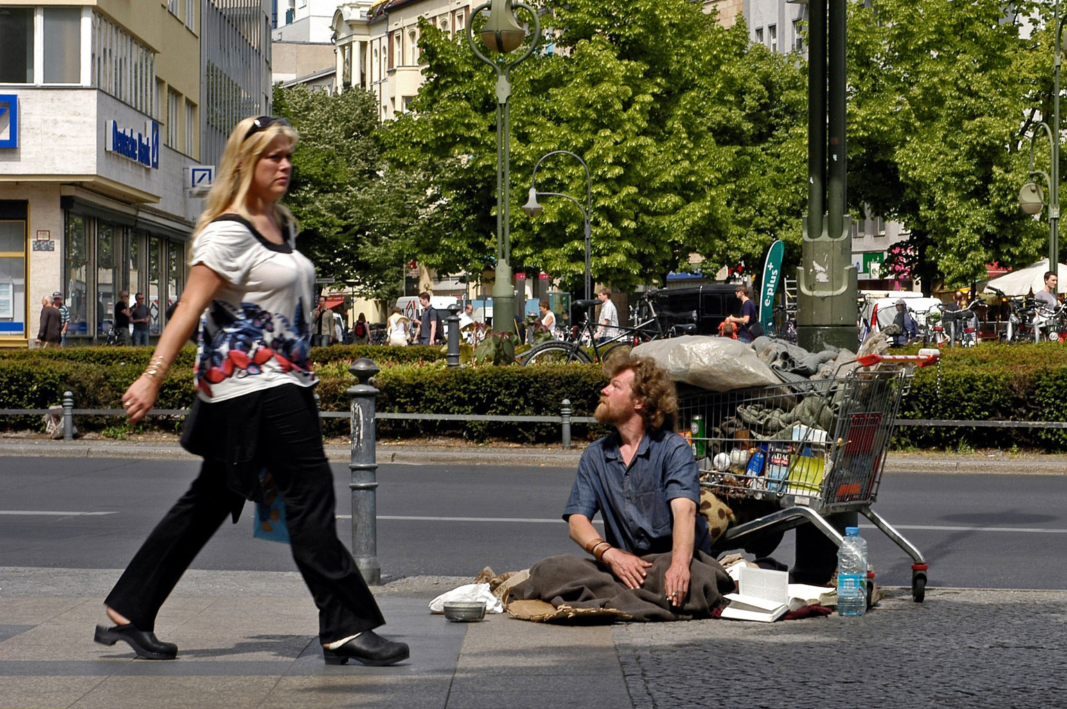 Darek i Piotr już nie pamiętają, jak się spotkali, na dworcu, a może w jadłodajni. Obaj przyjechali bez planu, ponad rok temu. Chcieli zobaczyć, jak tu jest, zarobić. - Wszyscy mówili, że w Berlinie jest lepiej - Darek niechętnie opowiada o życiu w Polsce. - Różne rzeczy się robiło. Piotr był malarzem, kładł glazurę. W Berlinie pracował tylko Piotr, dwa miesiące na budowie. Potem praca się skończyła, więc zbierali butelki. W zasadzie nie wiedzą, jak tu pracy szukać, choć wiedzą, że nie przez innych Polaków: - Oni oszukują. Raz pośrednik wyłudził pieniądze, niby za pracę. I zniknął. A po niemiecku się nie dogadają. - Ale źle nie jest – Piotr pokazuje plik banknotów. Wieczorami grzeją się w przedsionku banku, obok bankomatów. Otwierają klientom drzwi, mówią Guten Tag, zawsze coś skapnie. Na oko tyle, że mogliby wynająć pokój. Ale wolą spać pod schodami. - Szkoda pieniędzy.