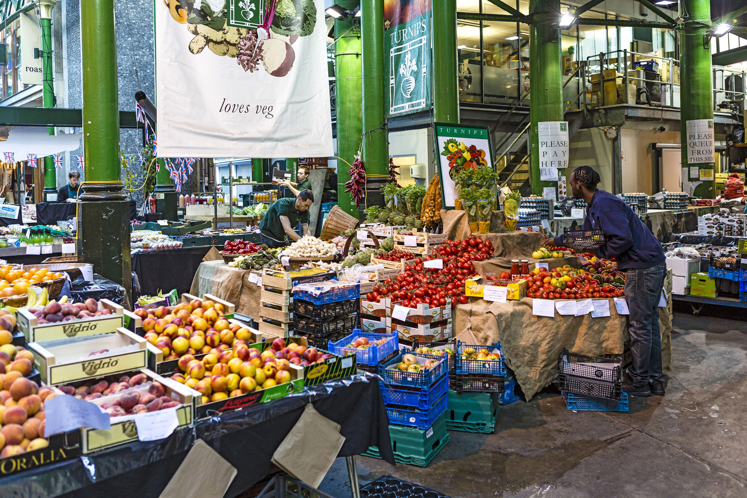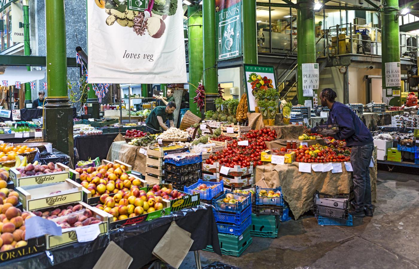 Są tu producenci mięsa od szczęśliwych (aż do śmierci) krów, owiec i świń. Działa stoisko rodziny Haywood, która od 1742 r. handluje ostrygami (za kontuarem Jacek z Polski), są też warzywa, owoce, chleb i tradycyjne angielskie placki. Borough wyspecjalizowało się w zaopatrywaniu restauracji i hoteli w żywność. To jeden z nowych trendów, bo jeszcze dekadę temu restauratorzy i hotelarze nie ufali producentom.