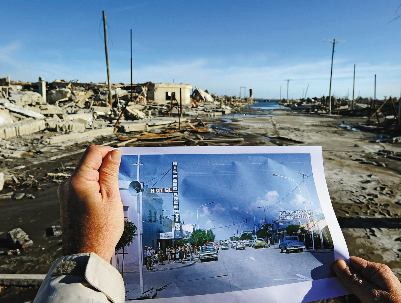 „Doświadczenie jest porażające” – donosił 15 listopada 1985 r. dziennik „La Nación”. „W najgłębszych miejscach płyniemy na wysokości dachów, w najpłytszych da się rozpoznać tylko niektóre sklepy dzięki wystającym z wody szyldom”. Kilka lat później poziom wody sięgnął 10 m – tyle, ile mierzy 3–4-piętrowy blok.