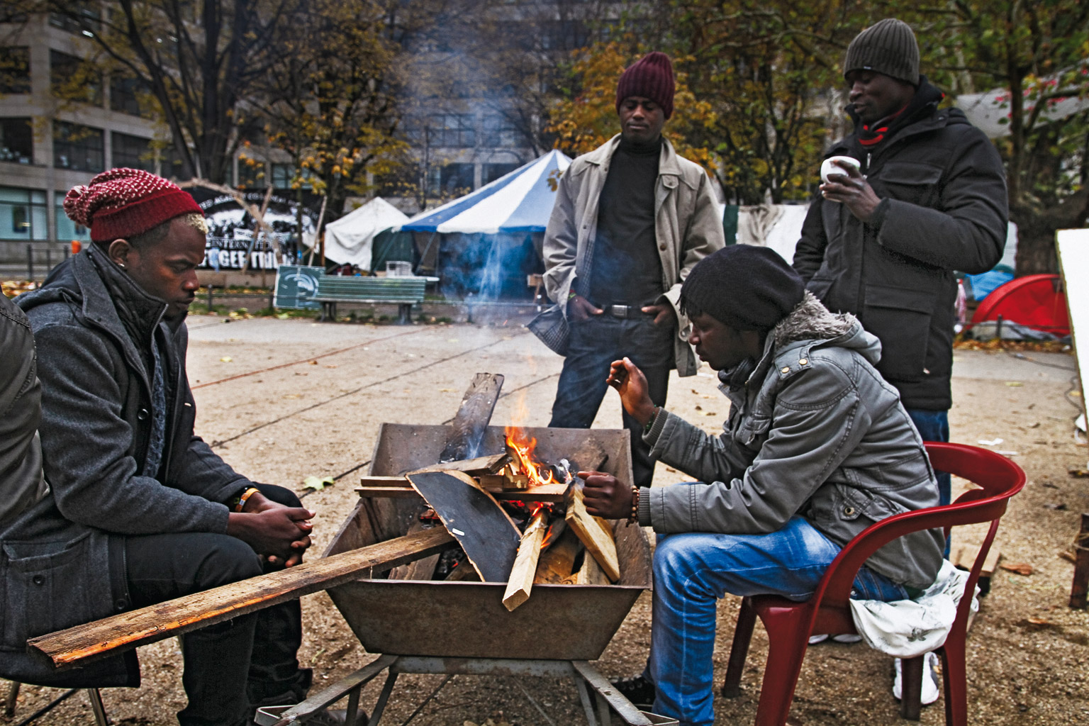 – Dlaczego chcecie rozmawiać z tą kobietą, a nie z nami?! – oburza się chłopak w dizajnerskich okularach, siedzący na ławce przed namiotem. – Musicie wiedzieć, że korupcja zaczyna się tutaj! Inny trochę go uspokaja. – Ta blondynka to Taina, Niemka, która z nami mieszka. Ale przede wszystkim walczy. Organizuje demonstracje, drukuje ulotki, prowadzi stronę na Facebooku „Lampedusa in Berlin” (Lampedusa to włoska wyspa, do której przypływają łodzie z afrykańskimi imigrantami, i na której działa przejściowy obóz dla uchodźców). Celem Tainy jest przyznanie wszystkim mieszkańcom obozu, a jest ich prawie dwustu, niemieckich paszportów: – Definitywnie musi się skończyć przepychanie ich z miejsca na miejsce. Ze względów humanitarnych trzeba im dać niemieckie obywatelstwo, z wszystkimi prawami, opieką socjalną, lekcjami języka – mówi.