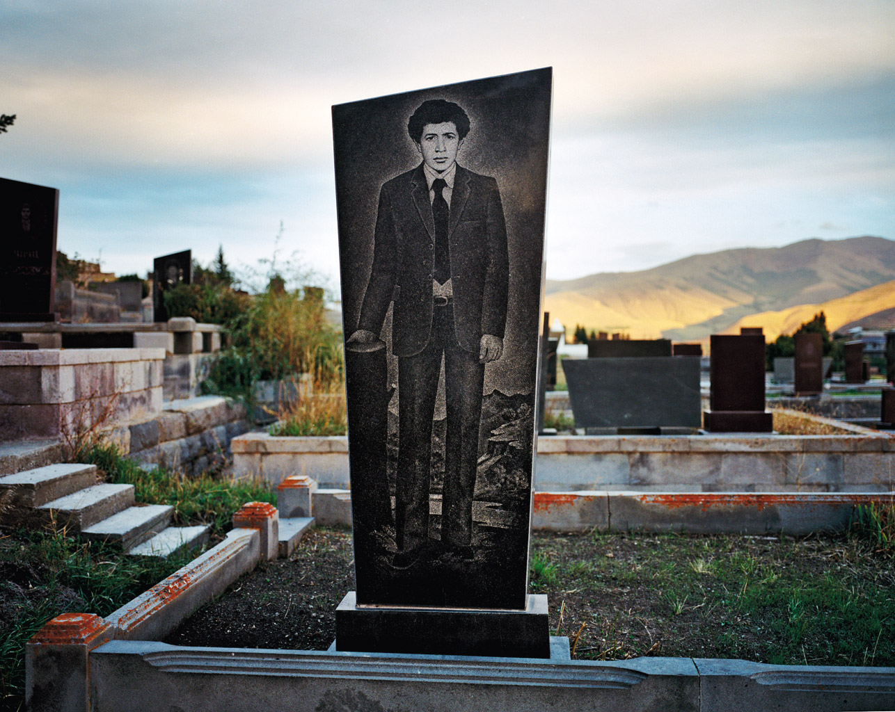 Obok, na zboczu wzniesienia, rozciąga się na 2,5 km cmentarz. Płyty nagrobne są przyozdobione ręcznie grawerowanymi sylwetkami zmarłych w skali, zdaje się, jeden do jednego. Na większości grobów data „7 grudnia” i zegar, gdzieniegdzie wyryte gruzy domów czy złamany goździk; czuć klimat lat 80.: mężczyźni w garniturach, w spodniach z szerokimi nogawkami, kobiety w sukienkach z epoki.