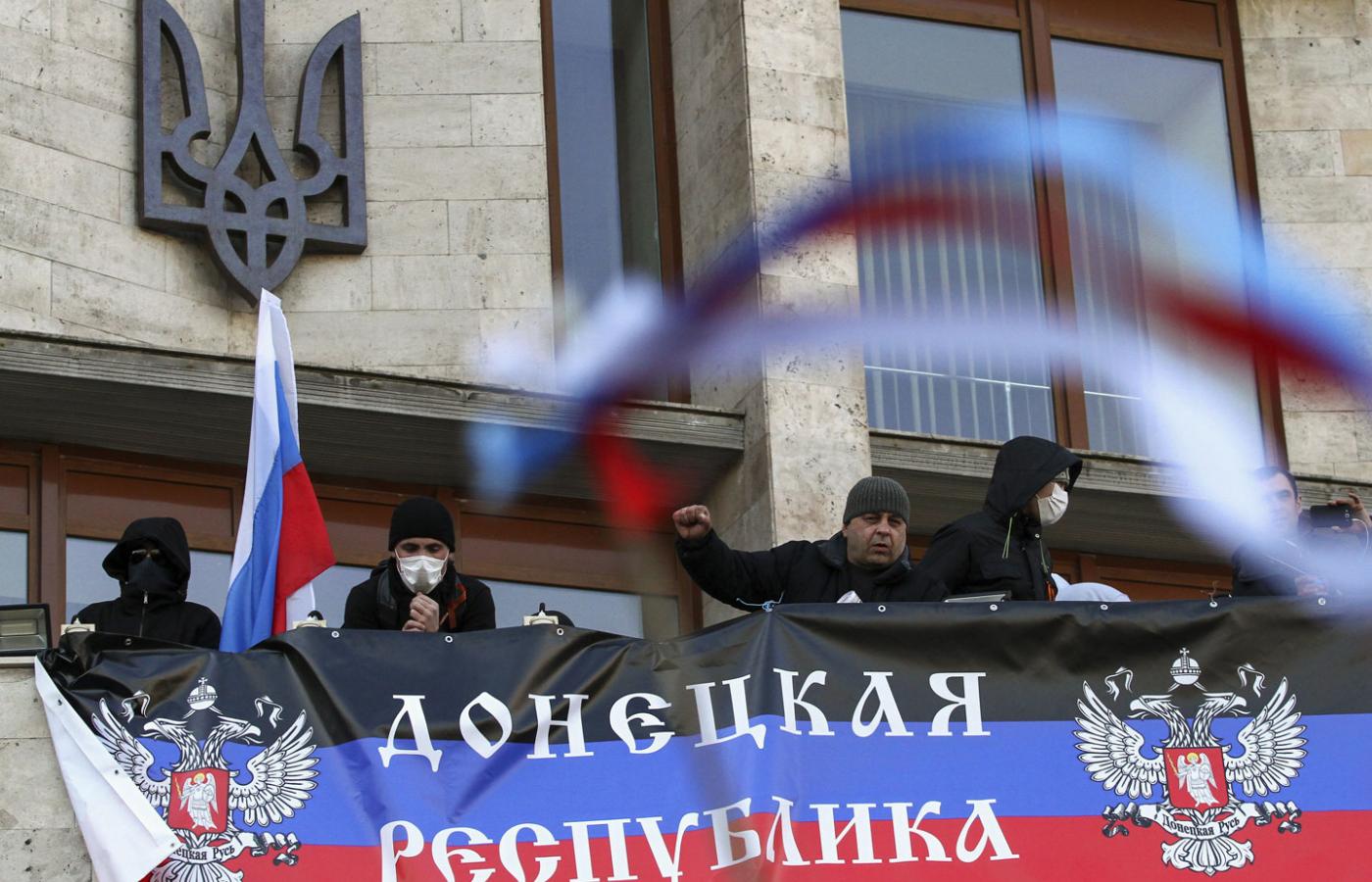W Doniecku zrzucono ukraińską flagę z siedziby administracji obwodowej. Z ustawionej na schodach budynku sceny ogłoszono powołanie niepodległej Republiki Donieckiej i jej wejście w skład Federacji Rosyjskiej. Separatyści ogłosili, że zamierzają zwrócić się do Władimira Putina o pomoc i przysłanie wojsk. Siły rosyjskie stoją 30 km od granicy. Gubernator Serhij Taruta prosi o zachowanie spokoju i nieużywanie siły. Widać wszystko, co dzieje się w mieście i obwodzie, wspiera Rinat Achmetow, najbogatszy Ukrainiec i główny pracodawca Donbasu. To on i jego grupa deputowanych zmonopolizowali Partię Regionów i wspólnie rozgrywają plan rozbicia Ukrainy. Aktywny jest także Aleksandr Jefremow, szef frakcji Partii Regionów w parlamencie. Oświadczył on właśnie, że działania separatystów w Ługańsku to nie prowokacja, lecz stanowisko wielu ludzi, i zamierzają oni swego przekonania bronić.
