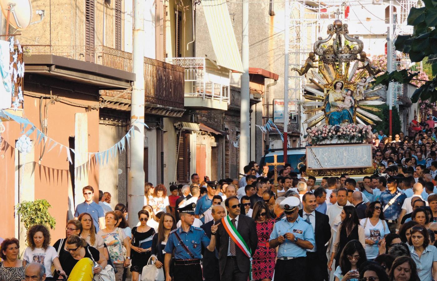 Do skandalu doszło 2 lipca w zaspanej, liczącej 4 tys. dusz, mieścinie Oppido Mamertina. Tradycyjna procesja z figurą Matki Bożej Łaskawej ruszyła w drogę od maryjnego sanktuarium. Na czele szedł proboszcz don Benedetto Rustico, kilku księży i lokalni prominenci: burmistrz Domenico Giannetta z szarfą z włoskiego trójkoloru przecinającą mu pierś, radni, karabinierzy i wszyscy, którzy w Oppido coś znaczą. Za nimi figurę zdobioną złotem i klejnotami niosło 25 tragarzy w nieskazitelnie białych koszulkach.