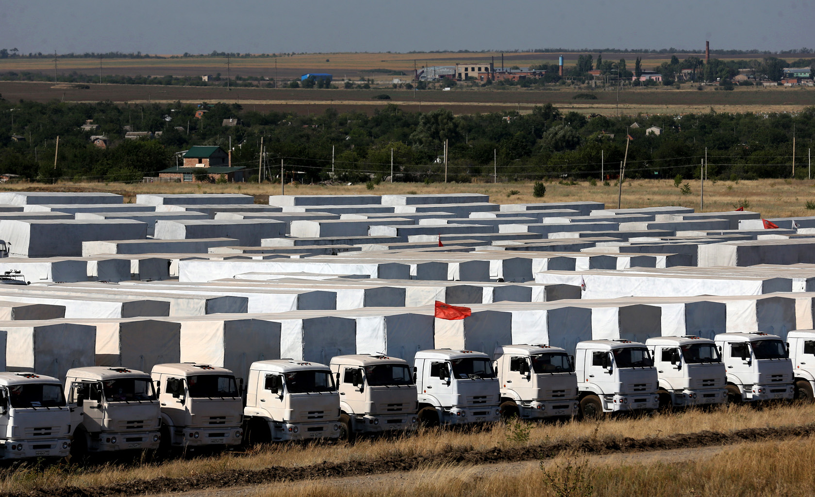Konwój 280 pomalowanych na biało ciężarówek przejechał tysiąc kilometrów rosyjskimi drogami i nie został wpuszczony na terytorium obwodu charkowskiego, gdzie początkowo zamierzał przekroczyć ukraińską granicę. Oponował minister obrony Ukrainy i władze obwodowe, oburzyli się politycy. Rosjanie zrozumieli, że rozwiązania siłowe w wykonaniu grupy niosącej pomoc humanitarną to byłaby farsa. I świat, całkiem słusznie, mieliby przeciwko sobie. Konwój ruszył więc do Doniecka w obwodzie rostowskim, tam się zatrzymał i przyczaił.