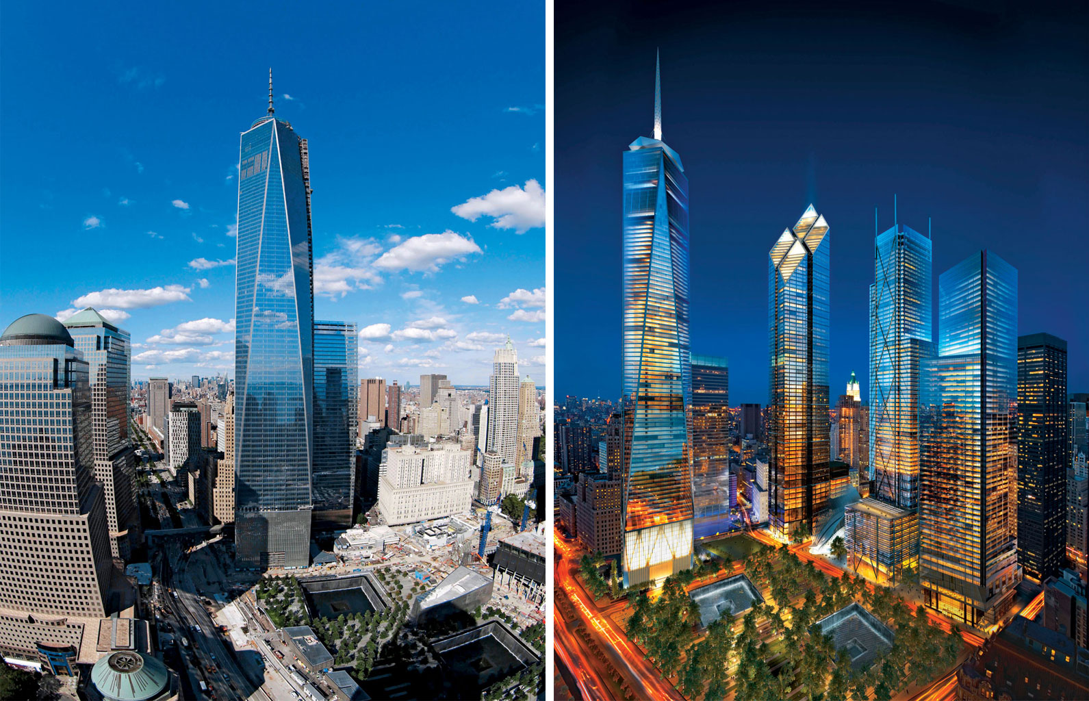 Na terenie Ground Zero czynne jest na razie tylko muzeum, czy raczej kompleks upamiętnienia 9/11, z basenami na miejscu fundamentów obu wież. W grudniu Wieża Wolności ma być ostatecznie gotowa, a w pierwszej połowie przyszłego roku wprowadzą się do niej pierwsi lokatorzy. Gmach będzie miał 417 m wysokości, a z anteną nawet 541 m, czyli 1776 stóp – to rok uchwalenia Deklaracji Niepodległości, czyli narodzin USA. Wbrew pierwotnym planom, na ostatnich piętrach nie będzie ostatecznie reprezentacyjnej restauracji, mającej być repliką słynnej Windows on the World na 107 piętrze północnej wieży, jednej z głównych atrakcji turystycznych obiektu. Ostatnio odstąpiono też od projektu nowego centrum artystycznego autorstwa Franka Gehry’ego; nie wiadomo jeszcze, czy ośrodek w końcu powstanie. Tymczasem deweloper Sharif El-Gamal, który kilka lat temu chciał w pobliżu Ground Zero budować meczet i musiał z niego zrezygnować po protestach rodzin ofiar 9/11, zaproponował wzniesienie w tym samym miejscu muzeum kultury i sztuki muzułmańskiej.