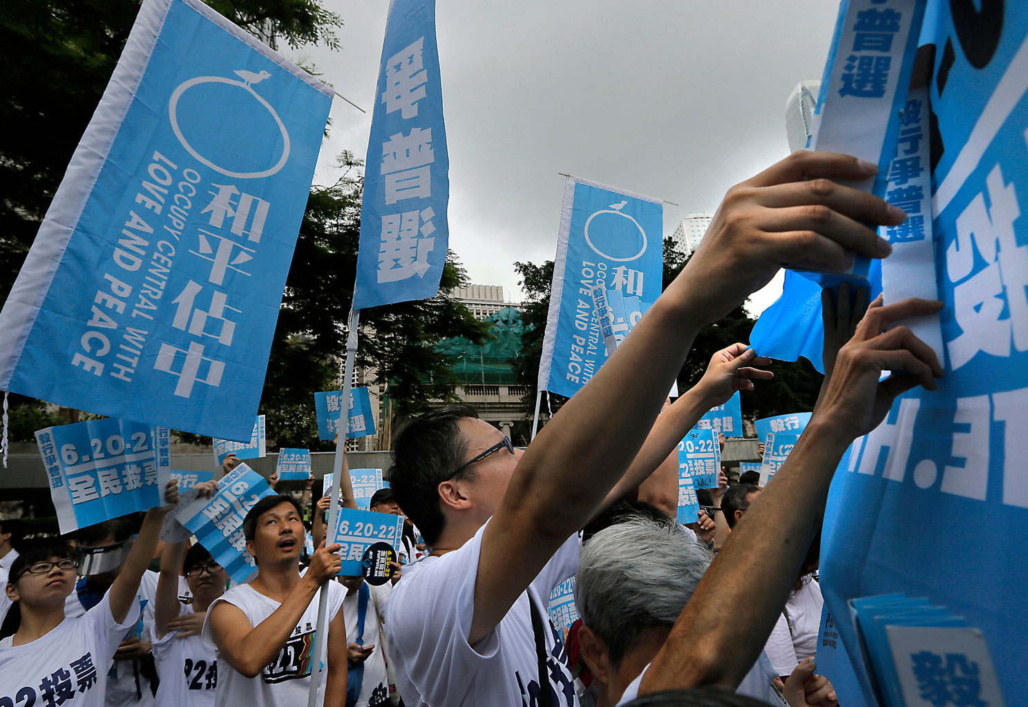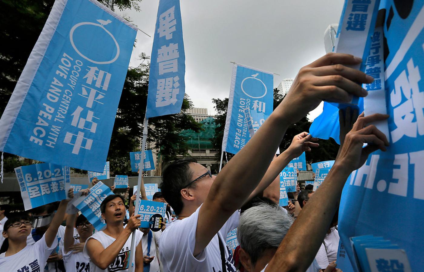Miasto miesiącami protestowało spokojnie, jednak w ostatnich dniach sprzeciw animowany przez ruch Okupuj Central z Miłością i w Pokoju (Central to dzielnica finansowa) zaostrzył się. Do akcji obywatelskiego nieposłuszeństwa dołączyli studenci, bojkotujący zajęcia w uczelniach i szkołach. Zaczęły się starcia z policją i przygotowania do dłuższej okupacji okolic siedziby hongkondzkich władz. Tłum liczący dziesiątki tysięcy osób radykalizuje się i zapowiada, że nie ustąpi, a pierwszy punkt listy jego żądań to dymisja obecnego szefa administracji.