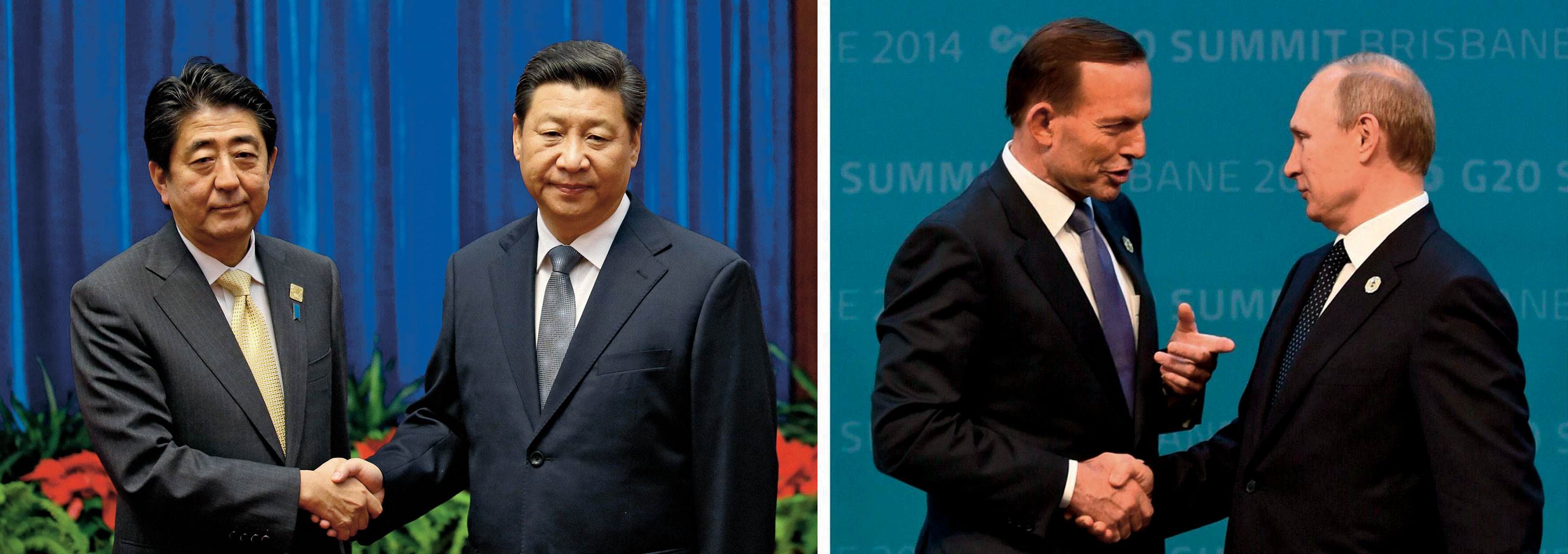 Listopadowych shake handów z przywódcami Zachodu mile nie będzie wspominał Władimir Putin. Na szczycie APEC Obama chłodno trzymał go na dystans, zaś australijski premier zgłosił listę pretensji w sprawie strąconego nad Ukrainą boeinga z 27 Australijczykami na pokładzie. Kilka dni później premier Abbott był gospodarzem szczytu G20, dla Putina musiał być już miły, więc w wywieraniu presji na prezydenta Rosji zastąpili go inni. W tej roli odnalazł się zwłaszcza premier Kanady Stephen Harper – jego „uścisnę panu dłoń, by powiedzieć, że musicie zabierać się z Ukrainy” zapewne przejdzie do historii dyplomatycznych uszczypliwości.