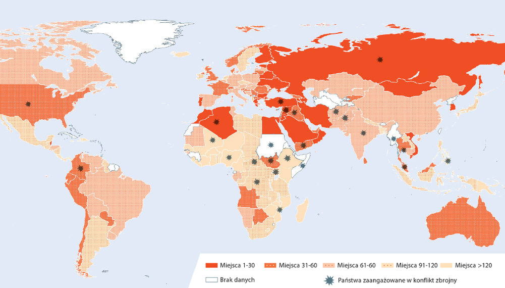 Na liście tej znajdziemy niewiele krajów NATO. Systematycznie obniżają one bowiem wydatki na wojsko. W latach 2009–2013 – jak podaje raport – europejscy członkowie Sojuszu ograniczyli wydatki na wyposażenie i szkolenia wojska o ponad 9 mld dolarów.