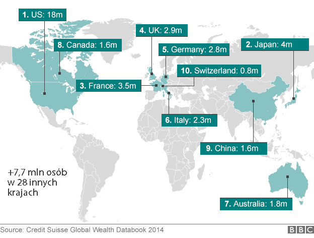 W dodatku majątki bogatych przez ostatnie 4 lata powiększyły się o kolejne 600 mld dol., a stan posiadania biednych skurczył się o 750 mld dol. Co trzeci z 1645 miliarderów na świecie, którzy znaleźli się na listach najbogatszych „Forbesa”, odziedziczył przynajmniej część majątku, co piąty działa w sektorze bankowym i ubezpieczeń. Coraz sprawniej używają swoich fortun, aby wywalczyć dla siebie coraz korzystniejsze rozwiązania finansowe.