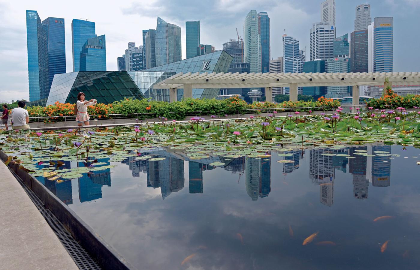 We współczesnej globalnej ekonomii Singapur kieruje się swą dawną portową logiką. Przyjmuje kupców i sprzedawców, pozwala wymieniać się towarami i tworzyć nową jakość. Warto wjechać na 57 piętro ekskluzywnego hotelu Marina Bay Sands, przypominającego unoszące się na wodzie skrzyżowanie kotwicy ze statkiem kosmicznym, i spojrzeć na olbrzymi port, pracujące nawet nocą dźwigi ponad kontenerami oraz setki zacumowanych wokół statków. Płynęły tu zewsząd z nadzieją na zarobek. Żaden nie odpłynie rozczarowany. Na wodach zatoki unoszą się czerwone boje ułożone w widoczną z daleka liczbę „50”.