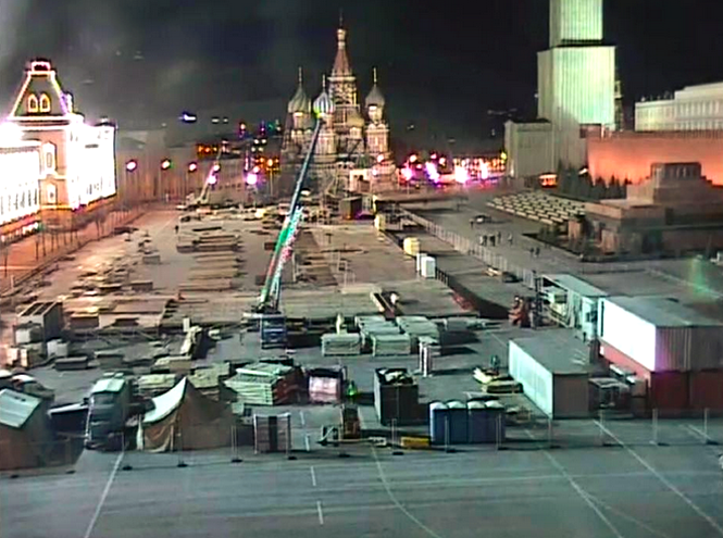 W okolicach Kremla wzniesiono scenę. Materiał konstrukcyjny dostarczono dzień wcześniej w specjalnym konwoju. O konwoju białych ciężarówek informował Maxim Tucker, korespondent „Newsweeka” na Ukrainie. Pojazdy dotarły na plac Czerwony nocą z piątku na sobotę (13/14 marca).