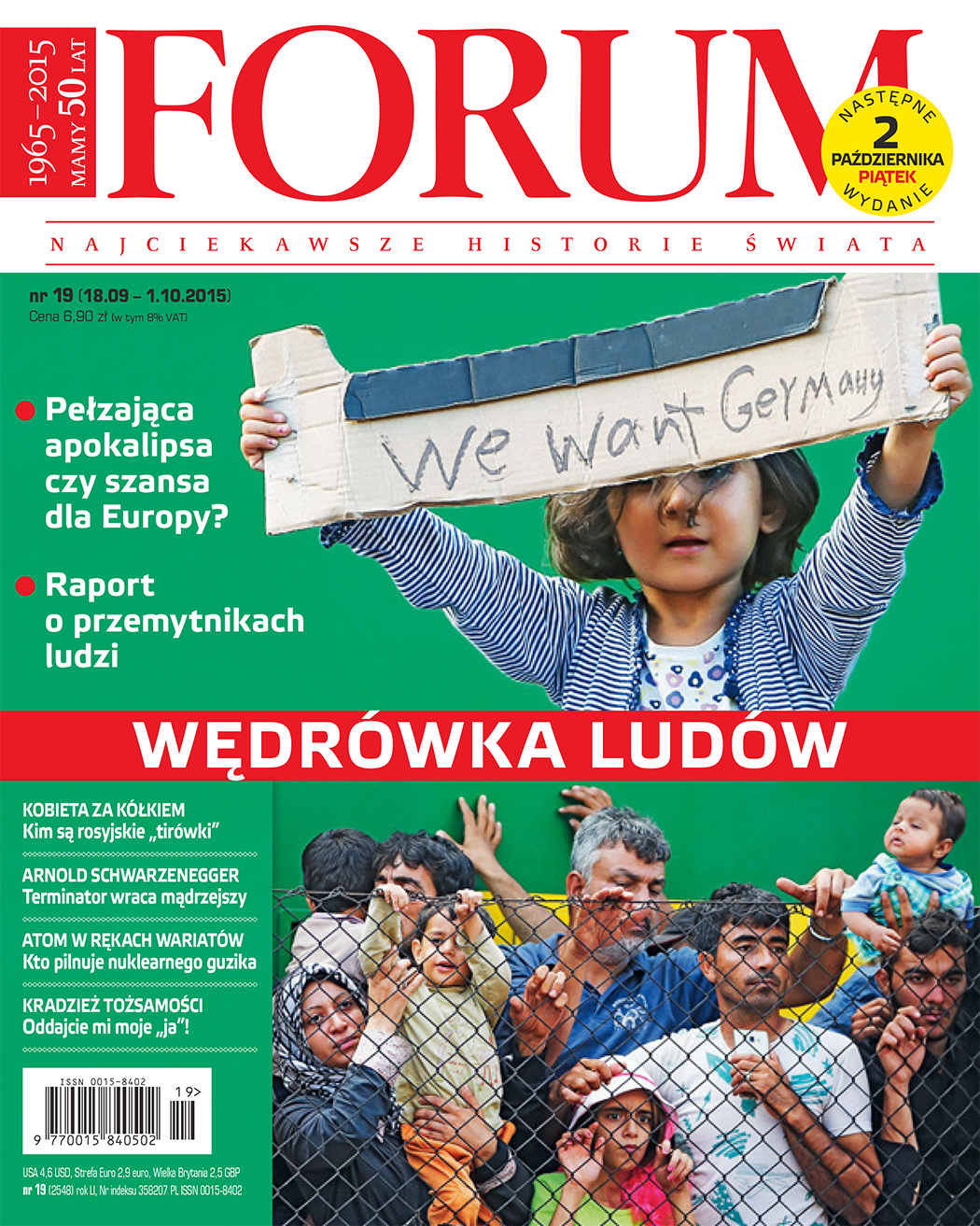 Jest już dostępny najnowszy numer FORUM, w którym gorąco polecam Państwu nasz tekst okładkowy o uchodźcach, wraz z arcyciekawym raportem o przemytnikach ludzi. Im więcej na świecie strachu, wojny i biedy, tym lepiej kręci się ten oparty na ludzkim nieszczęściu mroczny biznes.