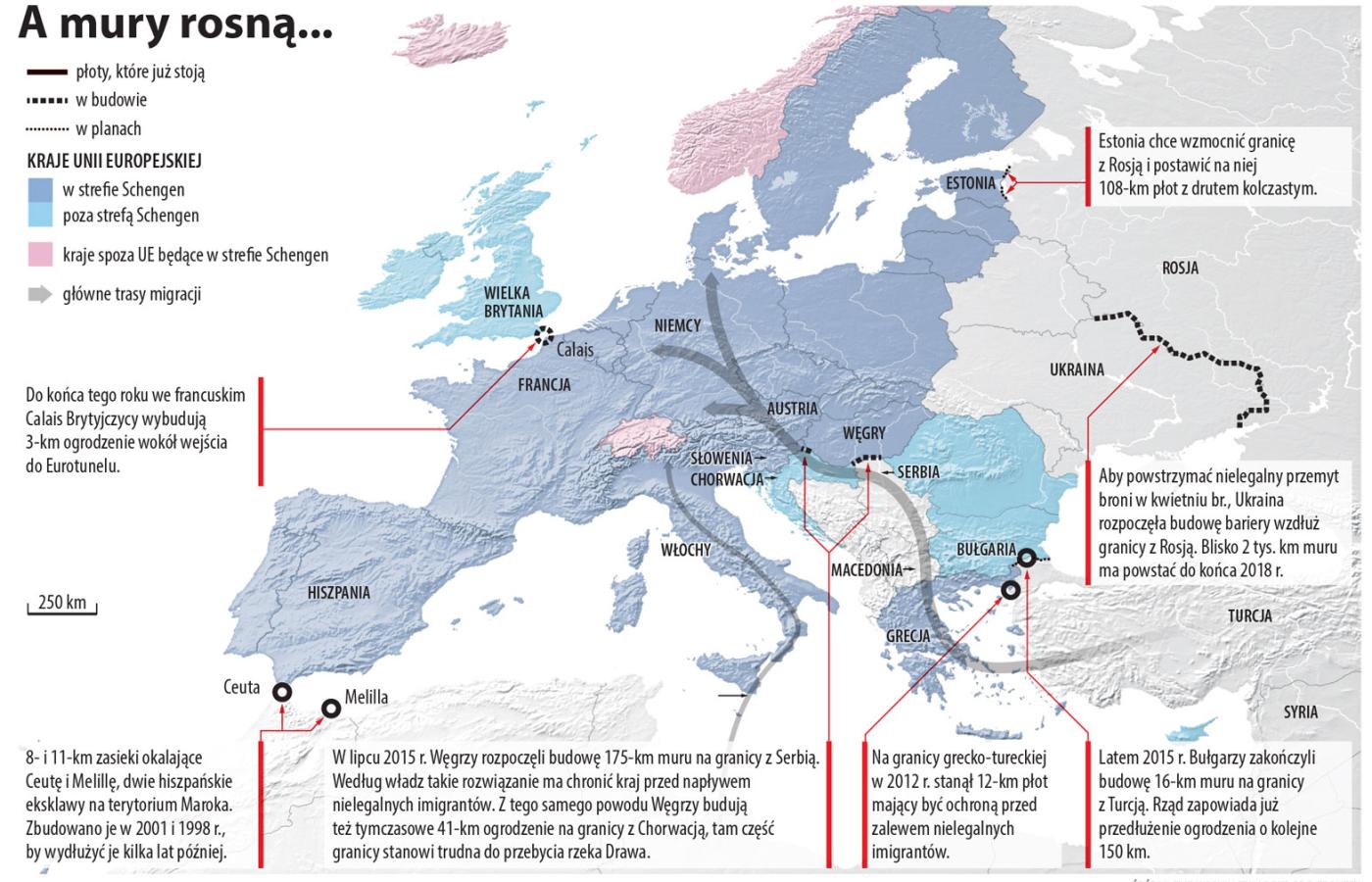 W 2013 r., mimo rozbudowanego systemu murów, do USA wjechało około pół miliona Meksykanów bez odpowiednich dokumentów. Tak samo w Europie przybysze z Afryki i Azji slalomują wśród płotów, np. spektakularna barykada węgierska skierowała ich do Chorwacji. Nie powstrzymują ich częściowo opłotowane już kilka lat temu granice Bułgarii i Grecji z Turcją – tylko w tym roku sforsowano je lub ominięto przynajmniej 5,5 tys. razy. I przede wszystkim: dobrze wyglądające w telewizji płoty nie działają na tych przybyszy, którzy znaleźli się po ich unijnej albo schengeńskiej stronie.