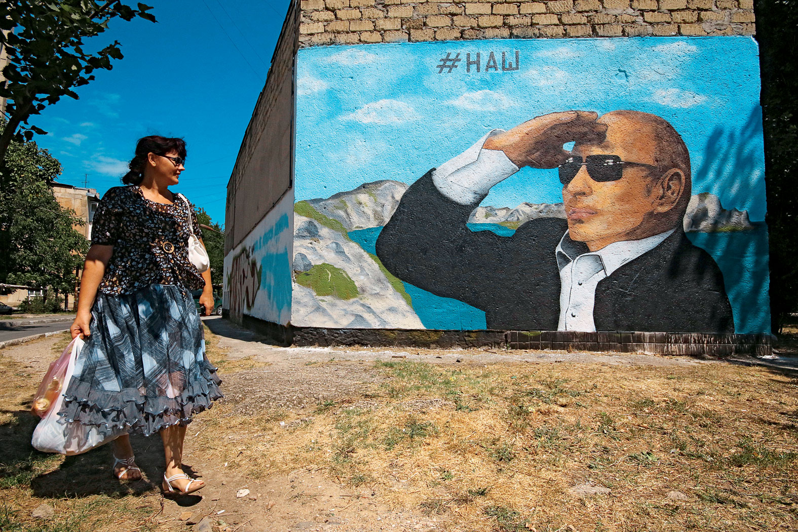 Władimir Putin siedzi z rozpiętym kołnierzykiem, przykłada dłoń do podbródka i uśmiecha się życzliwie. Napis obok zdjęcia: „Krym. Rosja. Na zawsze”. Setki takich billboardów wiszą dziś na Krymie, czasem kilkaset metrów od siebie. Jeden z nich wita przybyłych na lotnisku w Symferopolu.