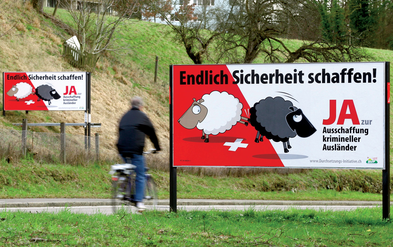 Szwajcarska Partia Ludowa, największe ugrupowanie w parlamencie tego kraju, nie przejmuje się międzynarodową krytyką i na swoich plakatach ponownie przedstawia obcokrajowców jako czarną owcę wykopywaną poza obszar narodowej flagi przez białą krewną. Po taką symbolikę SPL sięga regularnie już od 2007 r. Tym razem to element kampanii przed niedzielnym referendum, w którym obywatele zadecydują, czy poprzeć nową ustawę pozwalającą na przymusowe wysiedlanie cudzoziemców, którzy w ciągu 10 lat dwukrotnie popełnią przestępstwo.