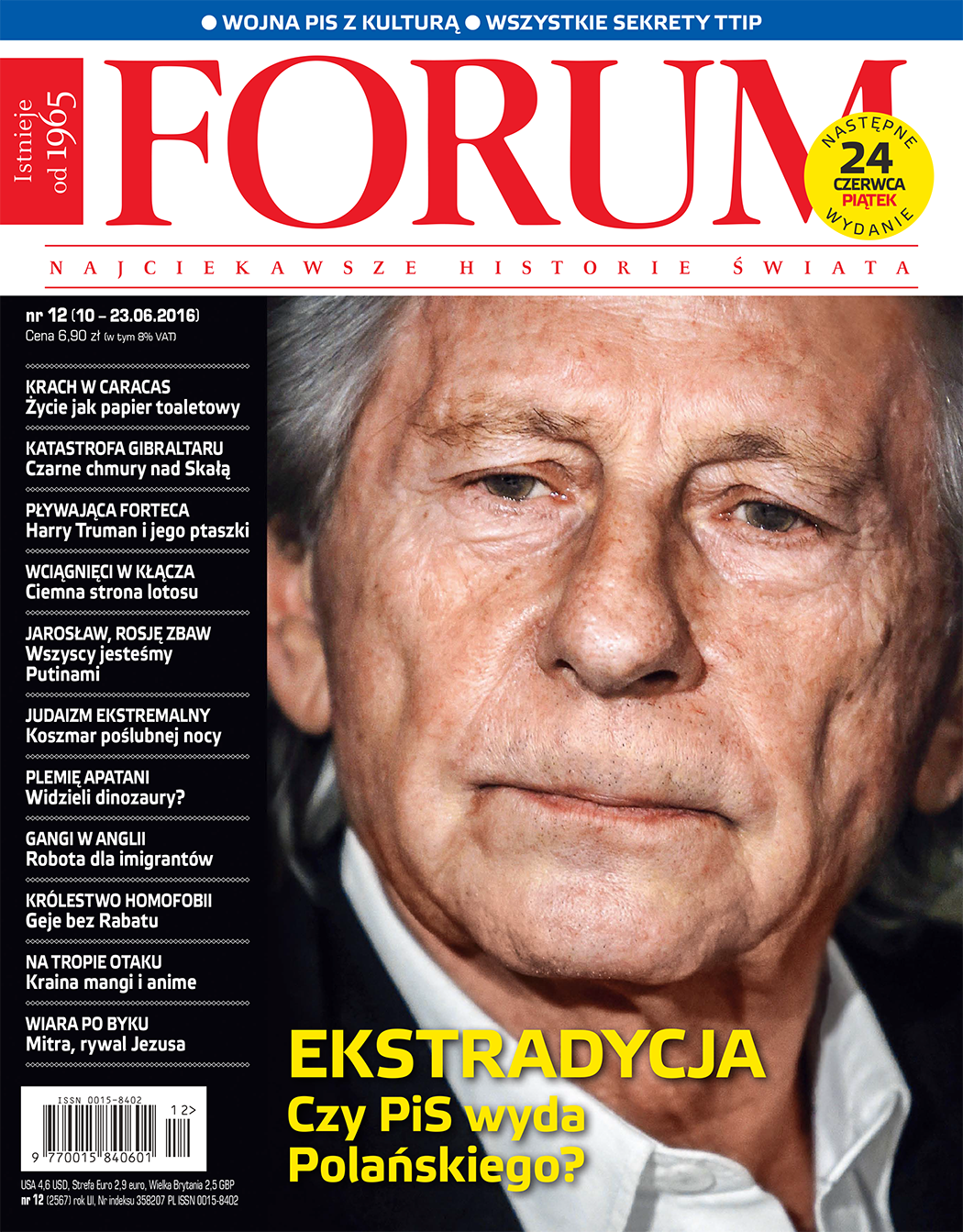 Wygląda to na prawo serii – na okładce poprzedniego numeru FORUM Woody Allen, na obecnej Roman Polański.