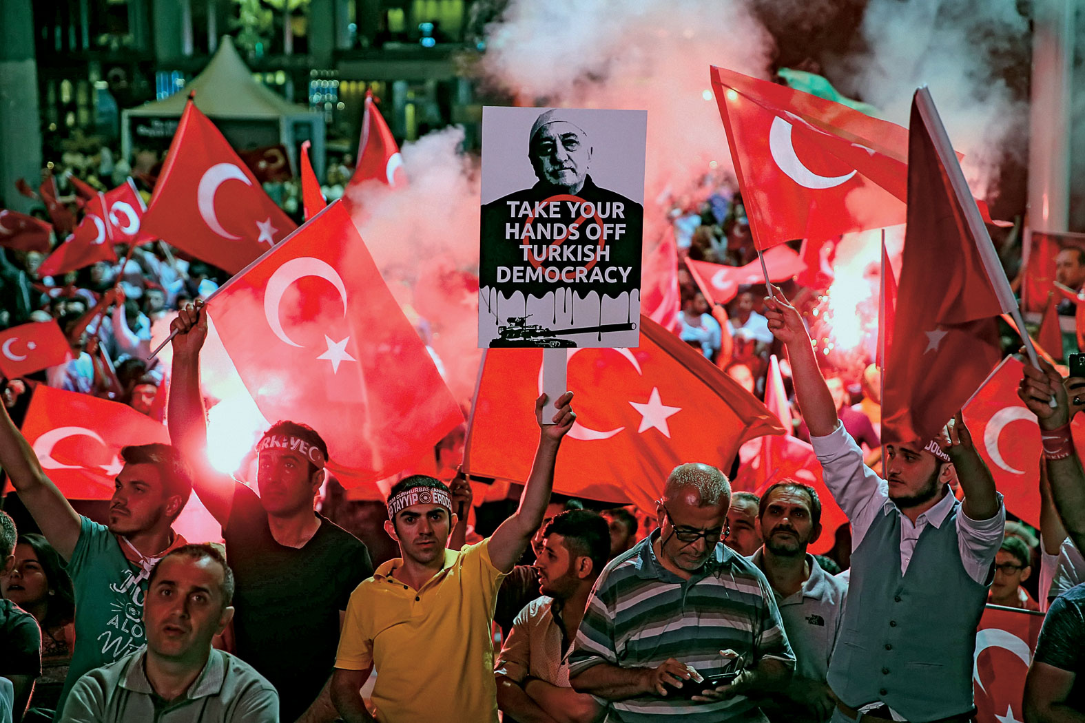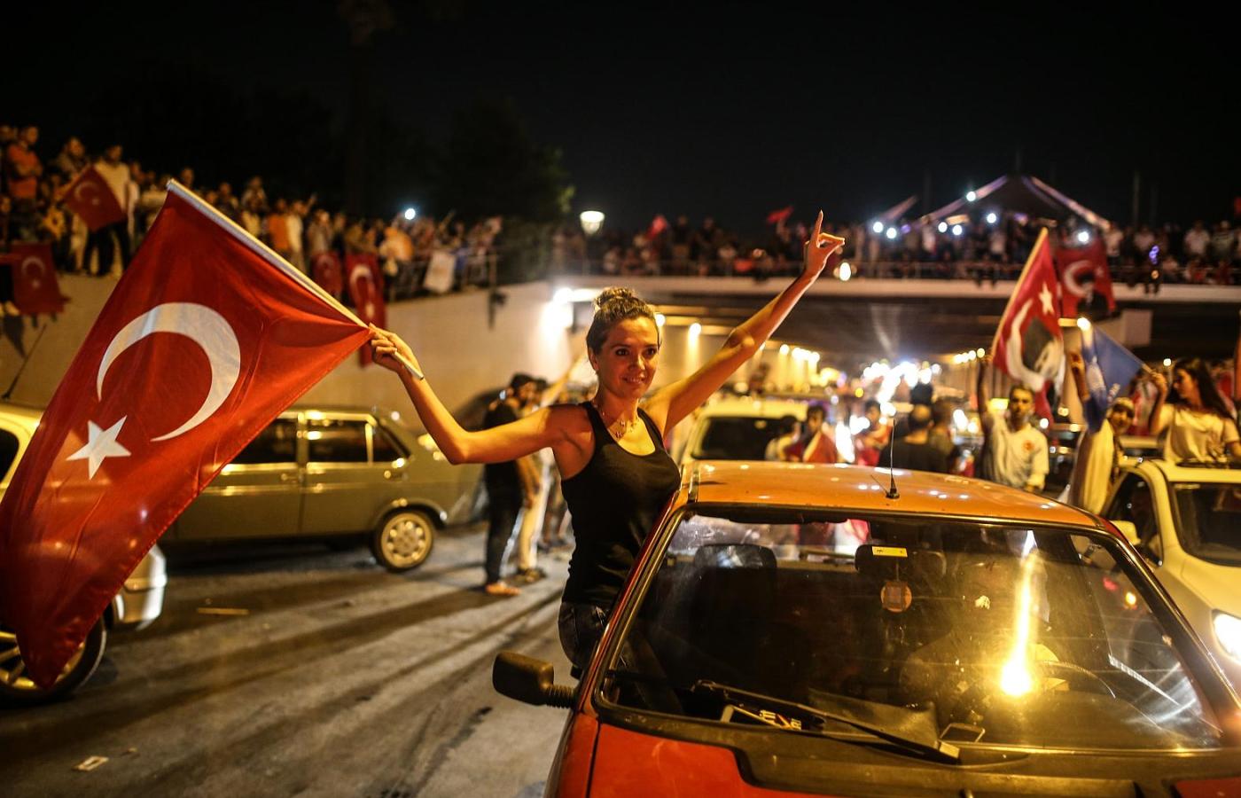 Kawalkada roztrąbionych samochodów pędziła w kierunku placu Taksim w centrum Stambułu. Z ich okien wychylali się młodzi ludzie, wymachując tureckimi flagami. Nad głowami tysięcy Turków zebranych na Taksim rozlewały się dźwięki pieśni wyborczej prezydenta Recepa Tayyipa Erdoğana. Niektórzy mężczyźni w tłumie składali palce na kształt łba wilka, symbolu skrajnych nacjonalistów. Inni skandowali, że Allah jest wielki. Rodziny pozowały do zdjęć na tle policyjnego czołgu. Pan w średnim wieku sprzedawał kawałki arbuza. Był wieczór 16 lipca.