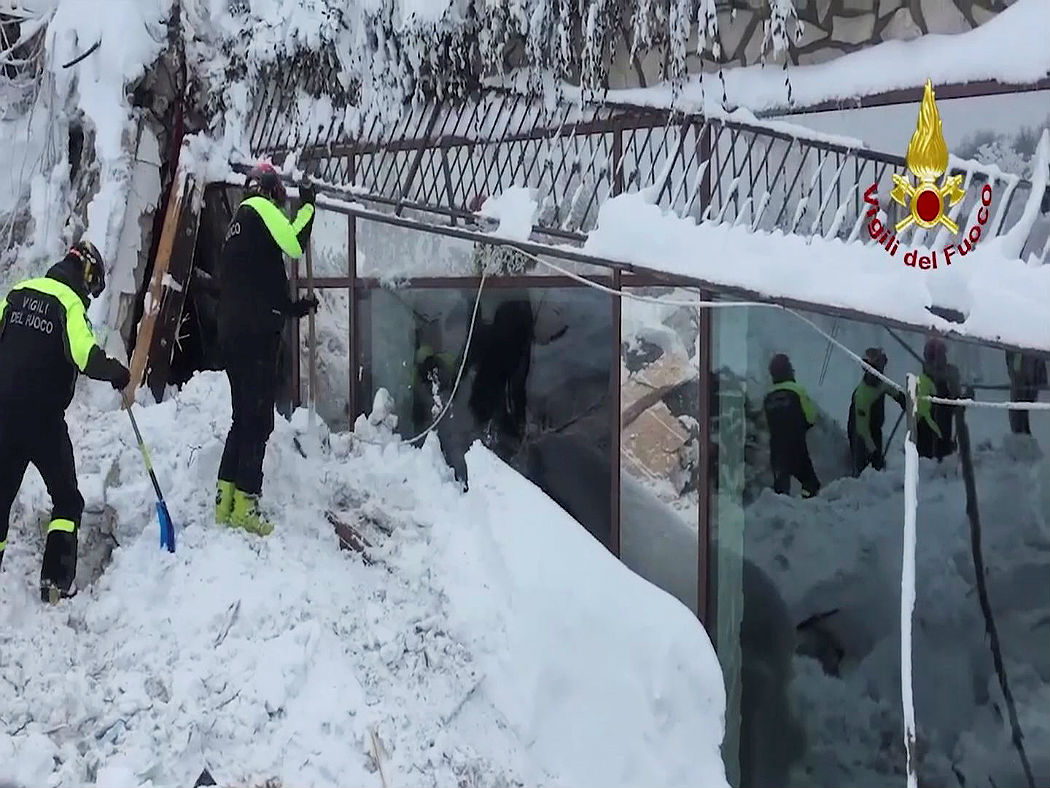 W nocy z 18 na 19 stycznia na włoski hotel Rigopiano koło Pescary znajdujący się na wysokości 1200 metrów n.p.m. zeszła lawina spowodowana wcześniejszymi wstrząsami sejsmicznymi. Budynek częściowo się zawalił i niemal całkowicie został przysypany śniegiem. Jak poinformował zarządzający prowincją Pescara Luciano D’Alfonso, „przesunął się o 10 metrów”. Burmistrz Farindoli Ilario Lacchetta napisał na Facebooku: „Lawina jest duża i całkowicie przykryła hotel. Obszar jest bardzo niebezpieczny”.