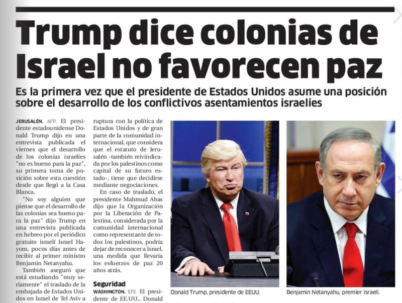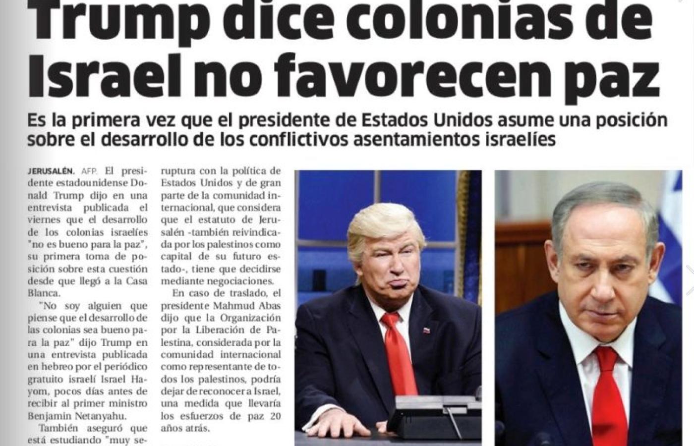 O wpadce dominikańskiego dziennika rozpisują się zagraniczne media, w tym m.in. BBC. Dlaczego? Opublikowany na 19. stronie dziennika artykuł o relacjach między USA a Izraelem ilustruje fotografia premiera Benjamina Netanjahu (dla porządku dodajmy, że jest to właściwe zdjęcie) oraz podobizna Donalda Trumpa, a przynajmniej tak sądził „El National”, dobierając zdjęcie do druku.