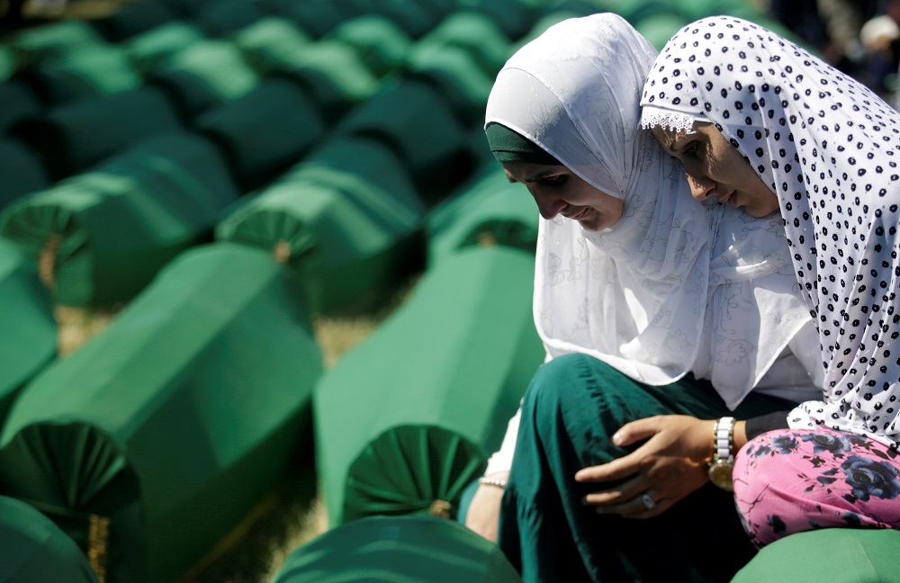 Wojska bośniackich Serbów zamordowały tam ponad 7 tys. muzułmańskich mężczyzn i chłopców, dopuszczając się aktu ludobójstwa. Stowarzyszenie Matki Srebrenicy od lat walczy o uznanie winy państwa holenderskiego za śmierć bośniackich Muzułmanów i o odszkodowania. Obwinia też żołnierzy w błękitnych hełmach o zatajenie informacji o zbrodni.