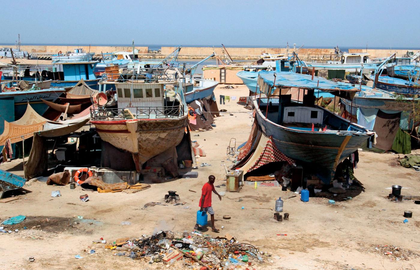 Z Libii płyną migranci o dwóch biografiach. Faktyczni uchodźcy z Bliskiego Wschodu i Afryki uciekają przed wojnami i rebeliami w Syrii czy w Nigerii, prześladowaniami w Gambii, niekończącą się służbą wojskową w Erytrei, alarmująco poważną klęską głodu w pasie Sahelu. Dojeżdżają do Libii na różne sposoby, w tym ciężarówkami przez Saharę. Ci o biografii drugiej próbowali się m.in. na dłużej zaczepić właśnie w Libii. Czerpiąca dochody z ropy i rozbudowująca infrastrukturę Libia Kadafiego była przez dekady celem emigracji zarobkowej. Oprócz m.in. Polaków marzących o dewizowych delegacjach na pustynię, przewinęła się przez nią spora część najbiedniejszej Azji, zwłaszcza Południowo-Wschodniej, i cała Afryka Północna. Nadal pracują tam setki tysięcy Egipcjan. I nawet upadła Libia wciąż przyciąga, w tym m.in. Banglijczyków.