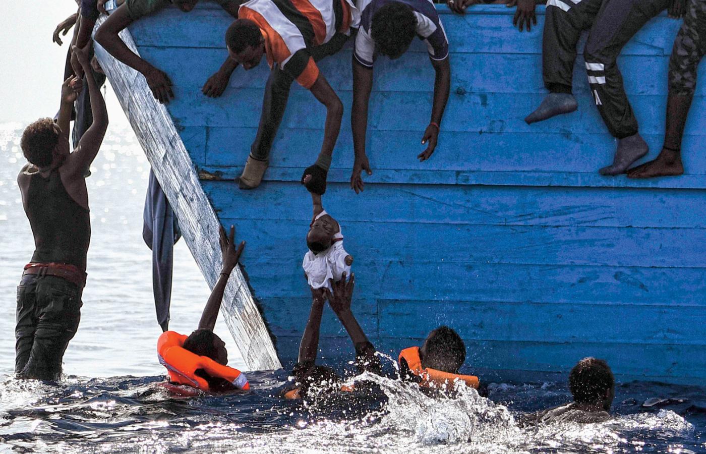 I wreszcie rejs. W teorii do Włoch z libijskich plaż jest 300 km, ale często płynie się etapami, bo przewodnicy tną koszty. Ładują 150 osób na 15-osobowym pontonie albo do drewnianych łodzi, które nigdy nie powinny się znaleźć na otwartym morzu. Nawet marne pontony bywają już na morzu ograbiane z silników. Albo tankują tylko tyle paliwa, by starczyło do granicy wód międzynarodowych, gdzie potrzebujących z wody zbierają statki m.in. europejskiej agencji straży granicznej i organizacji pozarządowych; swoje jednostki mają tam Lekarze bez Granic i Save the Children. Mają pełne ręce roboty – pod koniec maja w ciągu dwóch dni włoska straż przybrzeżna podjęła z wody 5 tys. osób.