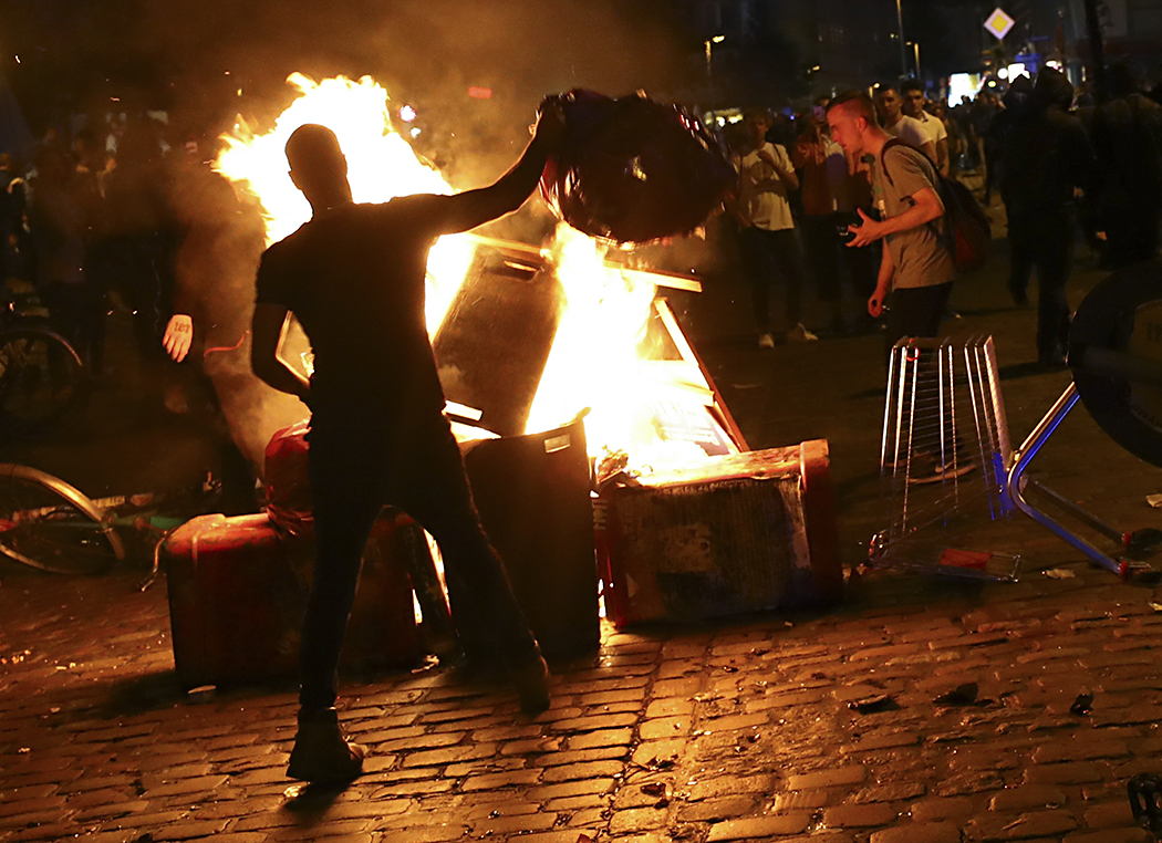 Jak podaje PAP, protestujący wznosili barykady, podpalili kilka samochodów oraz niszczyli wystawy sklepowe i siedziby firm. Według policji kilkakrotnie użyto również lasera, kierowanego na policyjny helikopter. Chodziło o to, żeby oślepić pilota.