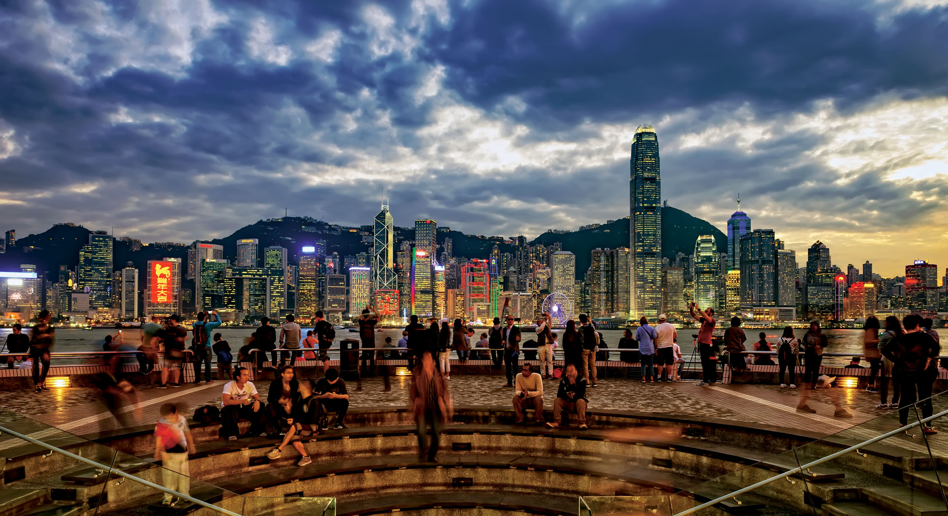 Ponieważ większość przybyszów z zewnątrz do tego nie nawykła, na jezdniach wymalowano napisy „patrz w prawo”, „patrz w lewo”. Gucci, Armani, Prada, Chanel i Burberry przeplatają się z małymi jadłodajniami trzeciej kategorii i straganami owocowymi. W pobliżu supereleganckich biurowców – dziś Hongkong ma najwięcej na świecie budynków wyższych niż 150 m – znacznie mniej eleganckie mrówkowce mieszkalne, z przyklejonymi na zewnątrz skrzynkami klimatyzatorów, bez których nie da się tu żyć.
