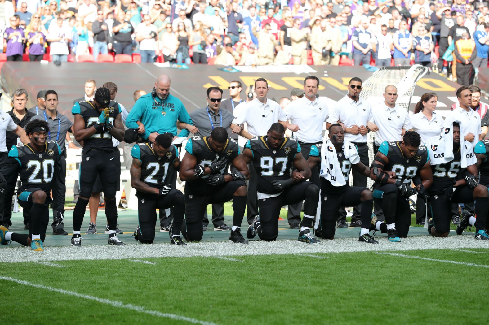 Wszystko zaczęło się we wrześniu ubiegłego roku, gdy przed rozpoczęciem meczu Colin Kaepernick został na ławce i na siedząco odśpiewał hymn. Później zdecydował się uklęknąć i w tej formie protest przetrwał do dziś.