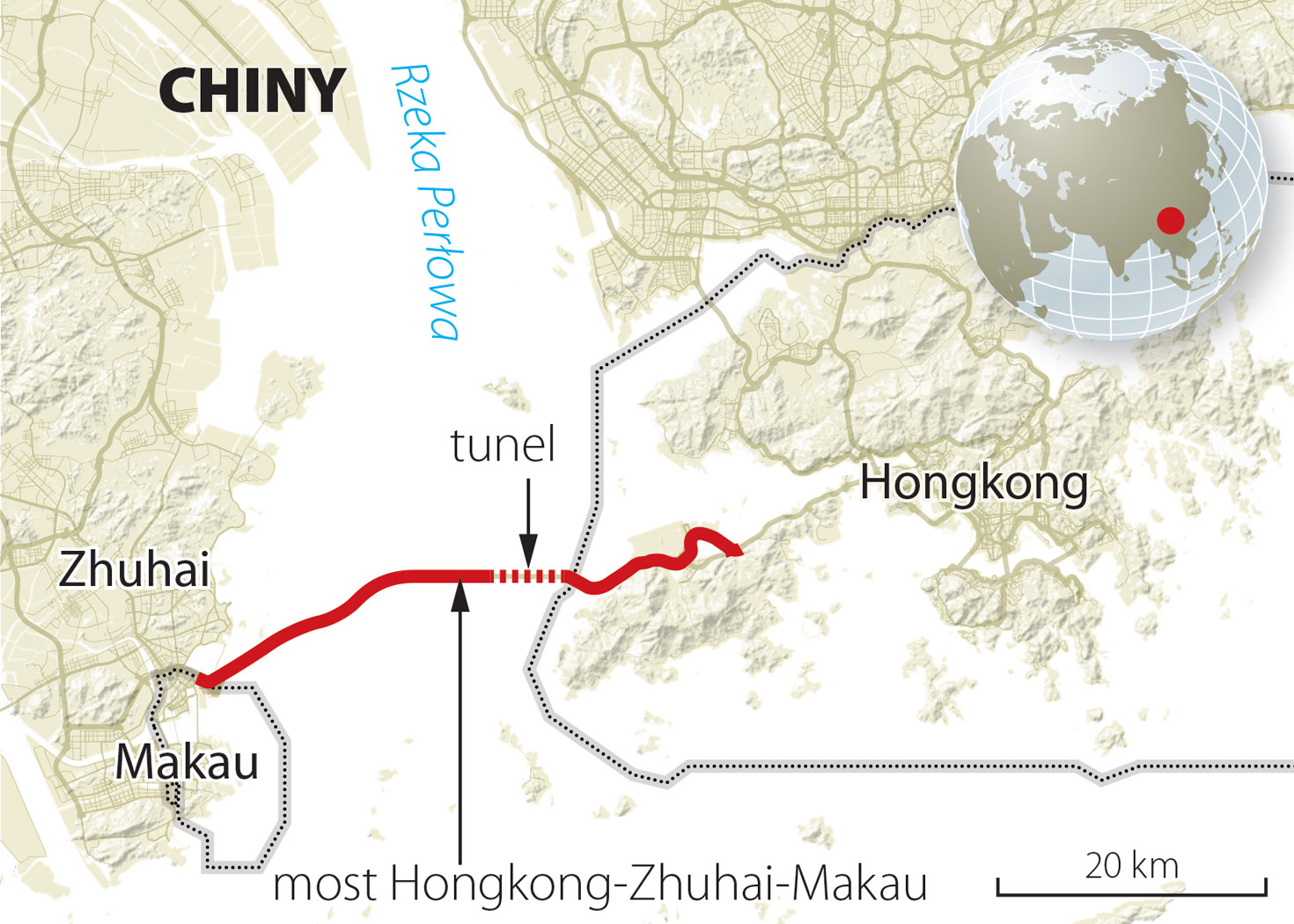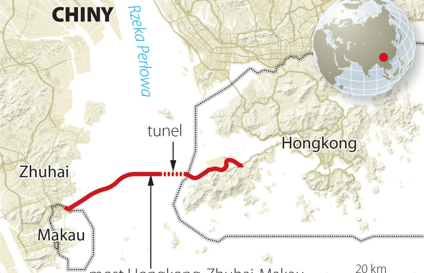 Licząca 55 km najdłuższa na świecie morska przeprawa mostowo-tunelowa, o mało wdzięcznej nazwie HKZMB, ma ruszyć lada tydzień. Łączy dwa specjalne regiony autonomiczne na obu brzegach rzeki Perłowej – Hongkong i Makau oraz Zhuhai w prowincji Gungdong. Prowincja ta zwana jest, jeszcze może na wyrost, chińską Kalifornią, z najgęstszą populacją (100 mln mieszkańców w promieniu 150 km) i najszybszym rozwojem oraz kalifornijskimi ambicjami, aby stawiać tu na nowe technologie.