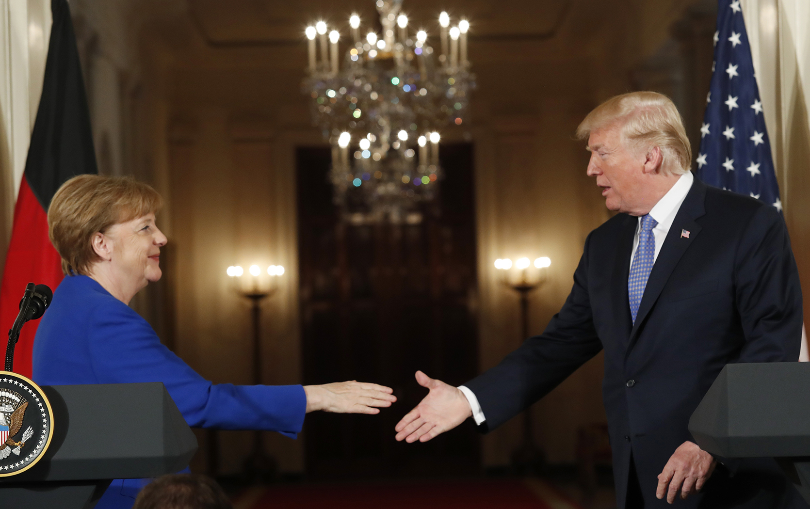 Macron i Merkel zademonstrowali kontrastowo odmienny styl relacji z Trumpem. Francuski prezydent komplementował go, ściskał i całował. Ich spotkania były spektaklem „bromansu”, braterskiej, męskiej przyjaźni. Okazywanie sympatii nie przeszkodziło Macronowi wygłosić w Kongresie mowy będącej frontalnym atakiem na trumpizm, ale chyba nie chowa on z tego powodu urazy.