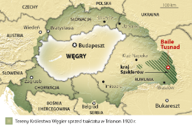 Transylwania razem z Szeklerszczyzną trafiła do Rumunii po tym, jak w 1920 r. w Trianon państwa zachodnie okroiły Węgry z każdej strony i porozdawały kawały ich ziemi sąsiadom. Od tej pory udało się Węgrom włączyć ją w swoje granice tylko raz, za Hitlera. Dały sobie wtedy z Zachodem spokój i weszły w sojusz z nazistami. Dostały nagrodę: nie tylko Szeklerów razem z całą Transylwanią, jeszcze południową Słowację i Zakarpacie.