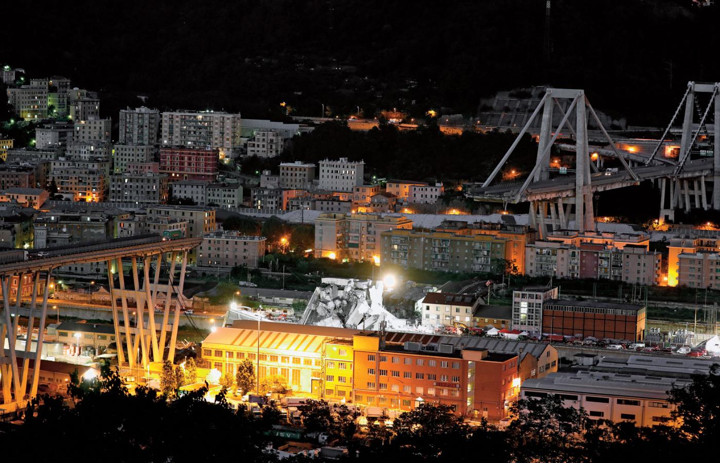 Włoski jazzman Paolo Conte śpiewał kiedyś o wakacyjnej podróży do Genui: „I za każdym razem zadajemy sobie pytanie, czy to miejsce, do którego jedziemy, nie połknie nas, a my nie wrócimy”. Okazało się to smutnym proroctwem. 14 sierpnia, dzień przed Ferragosto, hucznie obchodzonym świętem lata, prawie 200 m zawieszonego wiaduktu im. Riccardo Morandiego runęło w przepaść wraz z kilkudziesięcioma osobami. Zginęły rodziny jadące na wakacje, zawodowi kierowcy, przedsiębiorcy, lekarze, mieszkańcy miasta i cudzoziemcy. Z domów znajdujących się pod wiaduktem ewakuowano prawie sześćset osób, prawdopodobnie już nie wrócą do swoich mieszkań, budynki może czekać rozbiórka.