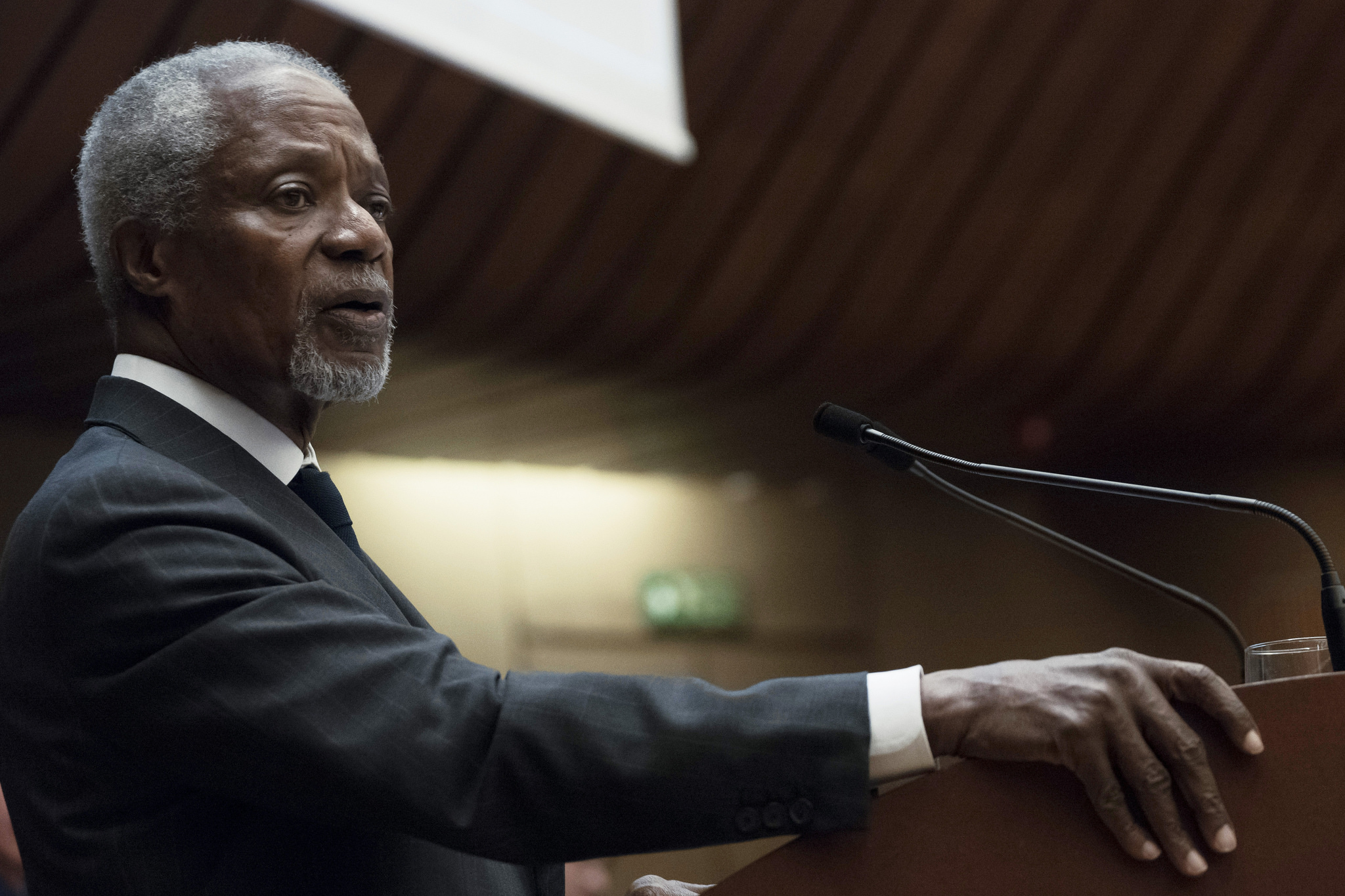 Kofi Annan był jednym z najbardziej znanych na świecie dyplomatów. Był pierwszym pochodzącym z Afryki Subsaharyjskiej i jedynym czarnoskórym sekretarzem generalnym ONZ. Kierował Organizacją przez dwie kadencje, od 1 stycznia 1997 r. do 31 grudnia 2006 r. W tym czasie, w roku 2001, wraz z ONZ otrzymał Pokojową Nagrodę Nobla. Pierwszą kadencję rozpoczął od przestawienia programu reformy tej organizacji. Zanim objął to zaszczytne stanowisko, przez 35 lat wykonywał wiele różnych zadań w jej ramach. Był m.in. asystentem sekretarza generalnego ds. operacji pokojowych oraz zastępcą sekretarza generalnego.