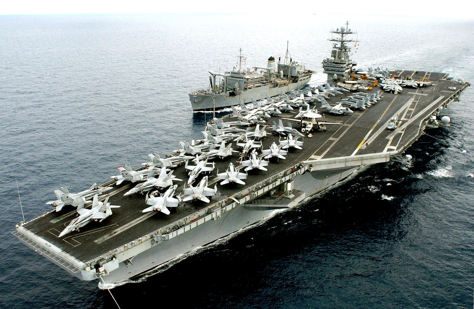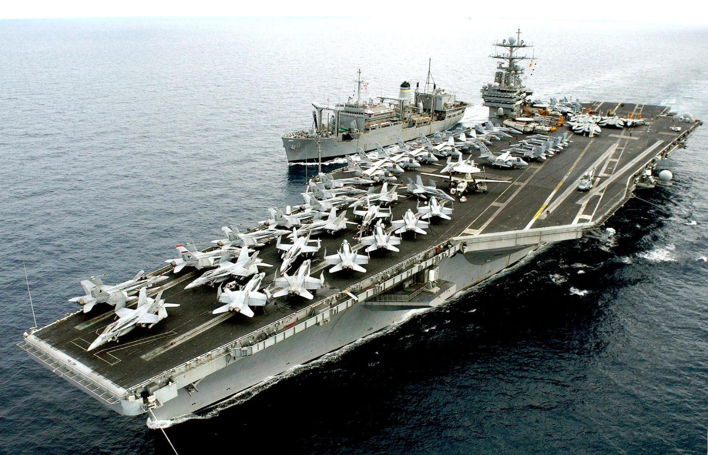 Choć trudno o bardziej wyrazisty symbol amerykańskiej potęgi morskiej niż lotniskowiec. Trudno też w sumie o okręt bardziej bezbronny – pozornie. To prawda, że ponad 330-metrowy okręt sam nie jest w stanie obronić się przed atakiem silnej marynarki wojennej, ba – nawet pojedynczego okrętu, zwłaszcza podwodnego. Dlatego w eskorcie lotniskowca musi być zawsze przynajmniej jeden wielozadaniowy niszczyciel i okręt podwodny typu „hunter-killer”, które zapewniają nawodnemu kolosowi obronę przeciwlotniczą i przeciwpodwodną.