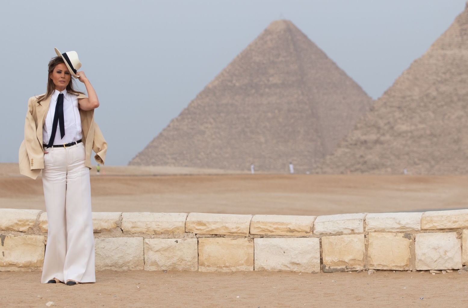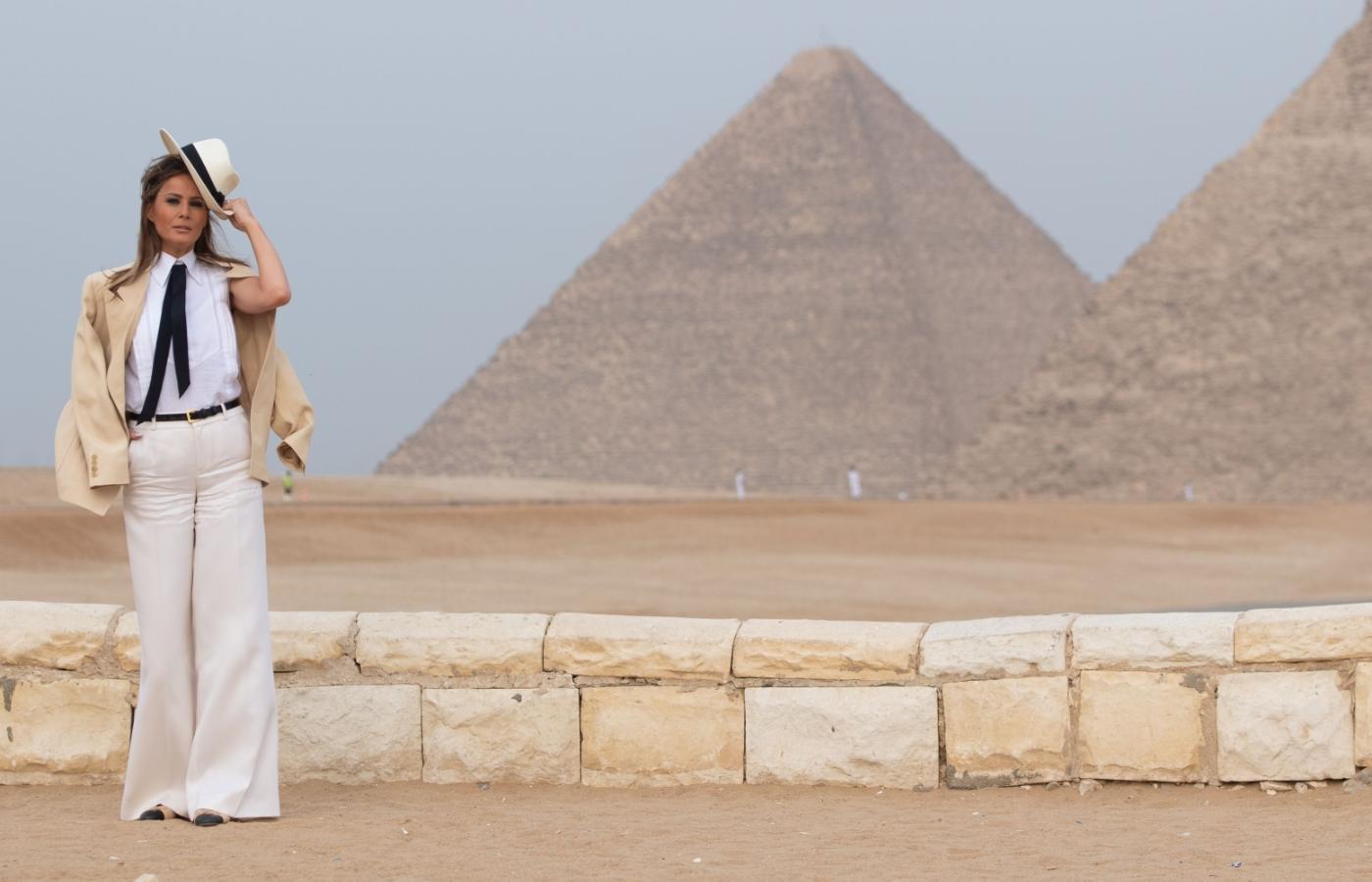 Do czasu. Melania przestała się uśmiechać, gdy dziennikarze skrytykowali jej „kolonialny” słomkowy kapelusz, który założyła na safari w Kenii, a potem „kostium” na styl Indiany Jonesa w odwiedzinach u Sfinksa w Egipcie.