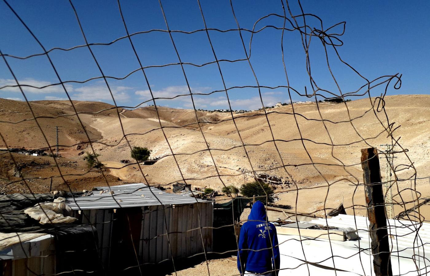 W latach 70. w okolicy założono ogromne osiedle Maale Adumim, które potrzebowało coraz więcej ziemi. Khan al-Ahmar jest ostatnią palestyńską osadą w tzw. strefie E1 (docelowo ma tu powstać ogromne osiedle połączone z Jerozolimą), bardzo ważną strategicznie, bo łączy północ z południem. Izraelscy osadnicy od 8 lat toczą przed izraelskim Sądem Najwyższym batalię o zburzenie wioski – pod łopaty buldożerów ma pójść ponad dwieście konstrukcji i szkoła. W tych „konstrukcjach” – najczęściej są to zbite z drewna chaty przykryte blachą i grubą folią – mieszkają 183 osoby. – Nie, nie myślę, żeby stąd wyjechać, tu jest mój dom – syn Abu Chamisa ze zdziwieniem reaguje na pytanie o plan wyjazdu za granicę. – Jestem stąd – dodaje, co w jego języku streszcza wszystko.