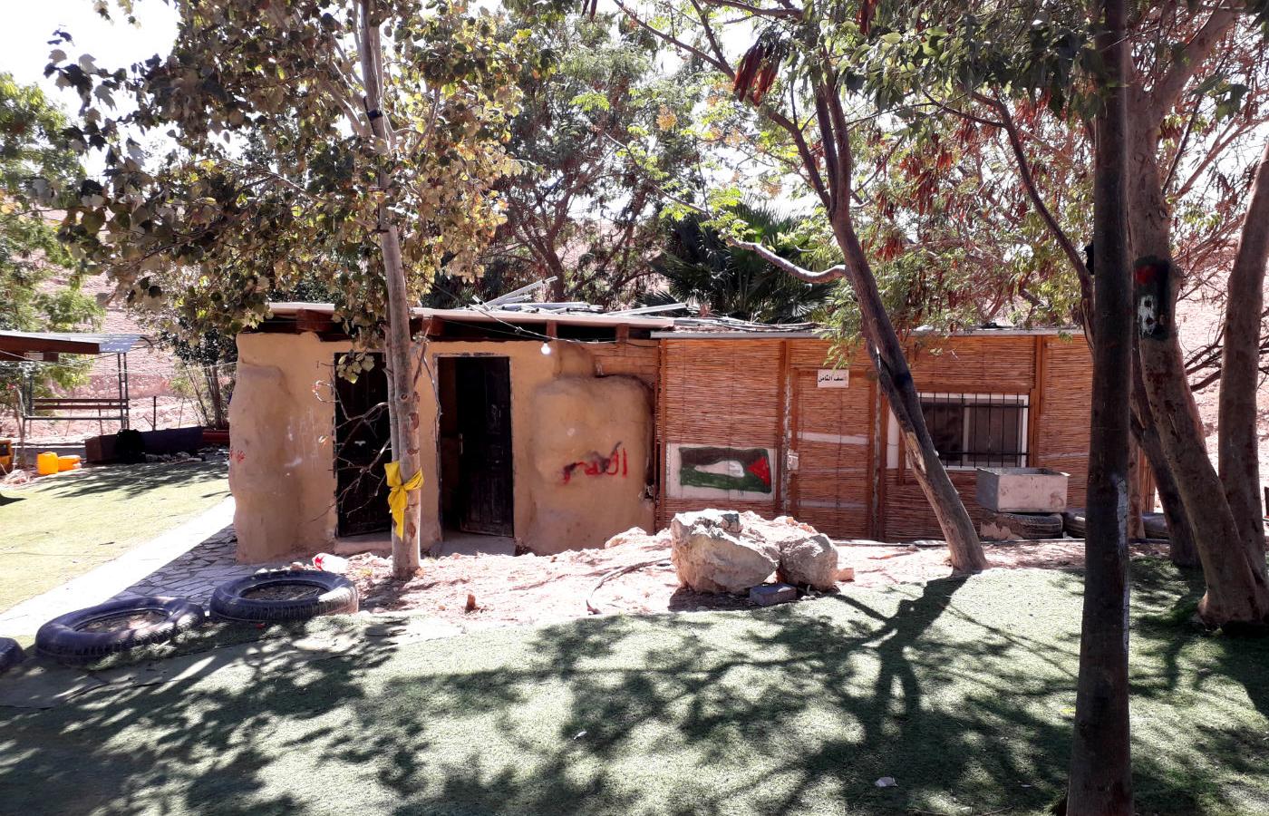 Khan al-Ahmar znajduje się w tzw. obszarze C (według porozumień z Oslo będących pod cywilną i militarną kontrolą Izraela), co oznacza również, że nie można budować niczego przy użyciu cementu bez pozwolenia. Otrzymanie go graniczy z cudem. Dlatego szkołę w 2009 r. – pierwszą w historii plemienia – włoski NGO zbudował z opon i gliny, wzorując się na brazylijskich fawelach. Pomagali obcokrajowcy oraz izraelscy aktywiści.