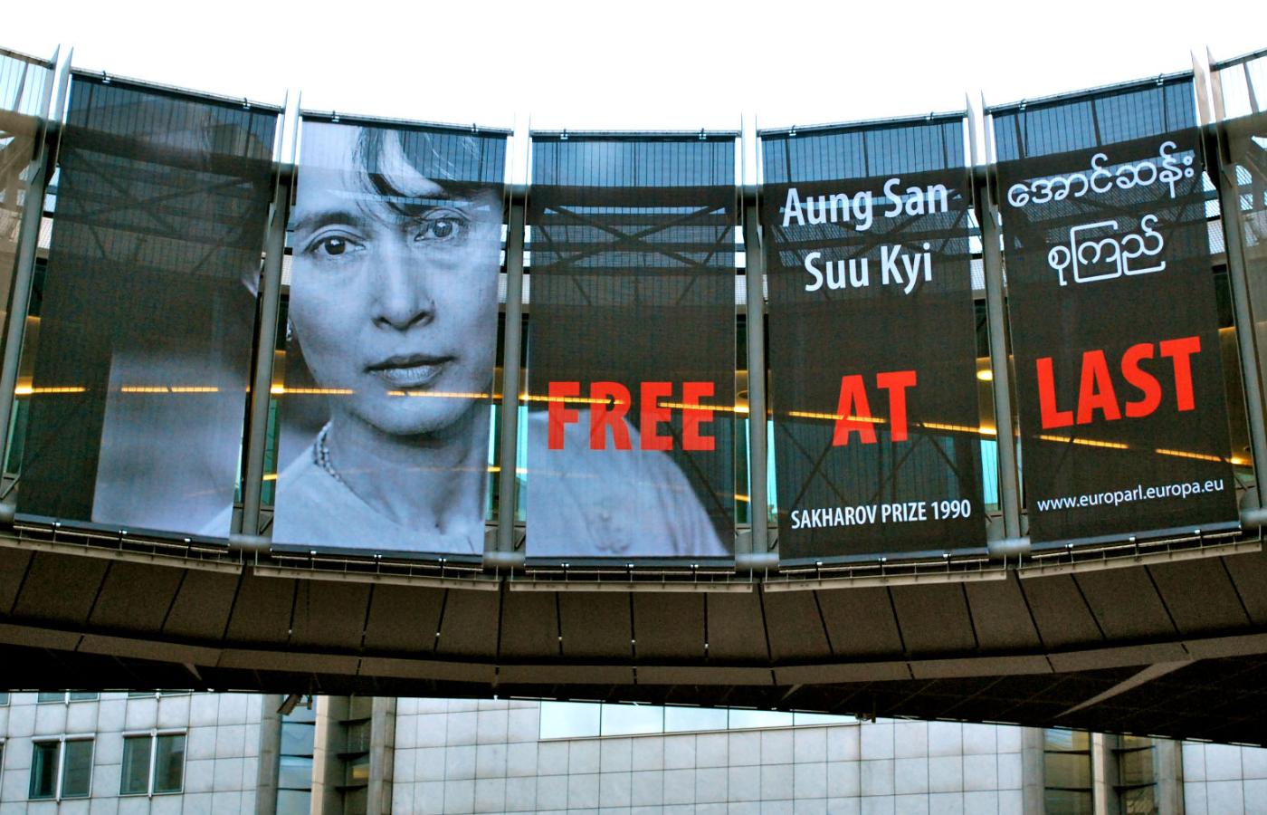 Rządząca junta nie wypuściła jej z kraju do umierającego na raka męża, obywatela brytyjskiego. Pisano o niej artykuły, kręcono filmy, budziła podziw i szacunek swą nieugiętą postawą pokojowej bojowniczki o prawa człowieka.