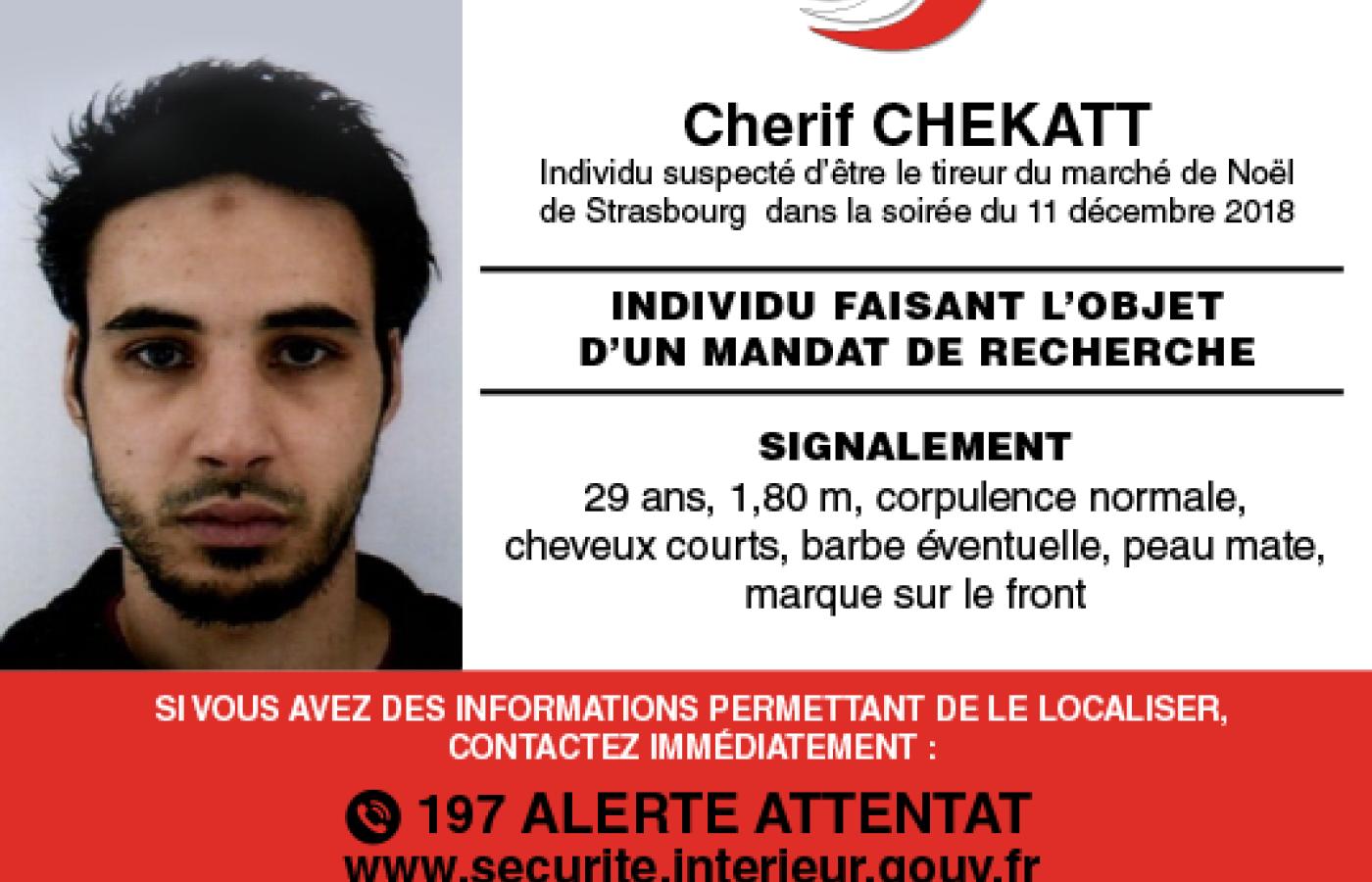 W dniu ataku (11 grudnia) Chekatt miał zostać aresztowany w związku z napadem rabunkowym, podczas którego doszło do zabójstwa. 29-latka nie zastano w domu. Policja urządziła obławę, ale znaleziono go dopiero dwa dni później w Strasburgu, w przemysłowej dzielnicy Meinau. Ukrywał się w jednym z magazynów.
