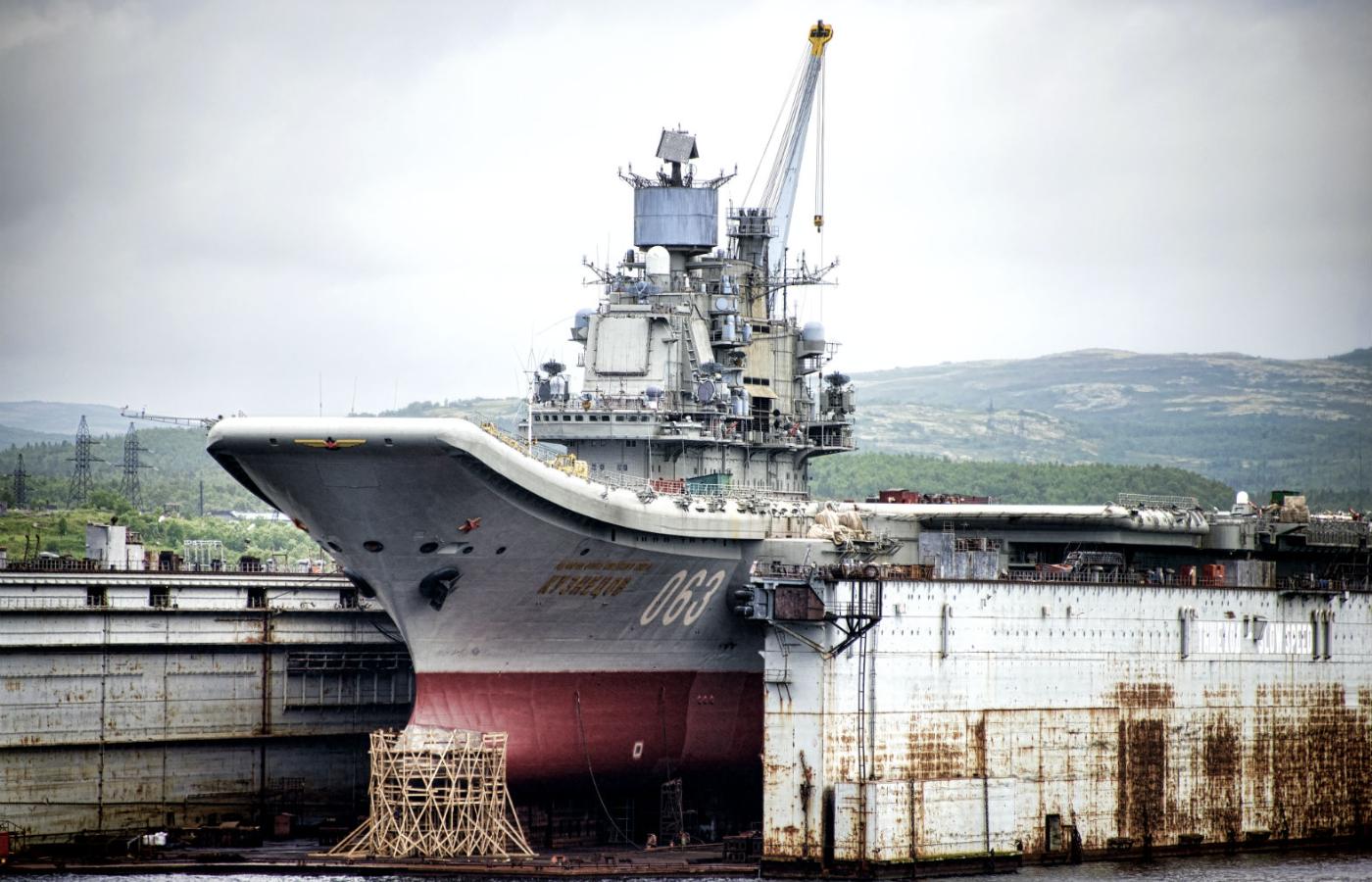 Rosyjska marynarka jest tylko cieniem dawnej potęgi, o ile siły morskie ZSRR w ogóle można było za taką uznawać. Jej dumą do niedawna był jedyny lotniskowiec: Admirał Fłota Sowieckiego Sojuza Nikołaj Kuźniecow. Został zbudowany w Nikołajewie, który dziś jako Mikołajów leży na Ukrainie. Wszedł do służby w styczniu 1991 r., trafił do Floty Północnej i długo nie przechodził żadnego poważnego remontu. We Flocie Północnej nie było nawet odpowiedniego basenu portowego. Okręt latami trzymano na kotwicy na redzie, a ewentualne naprawy odbywały się w morzu.
